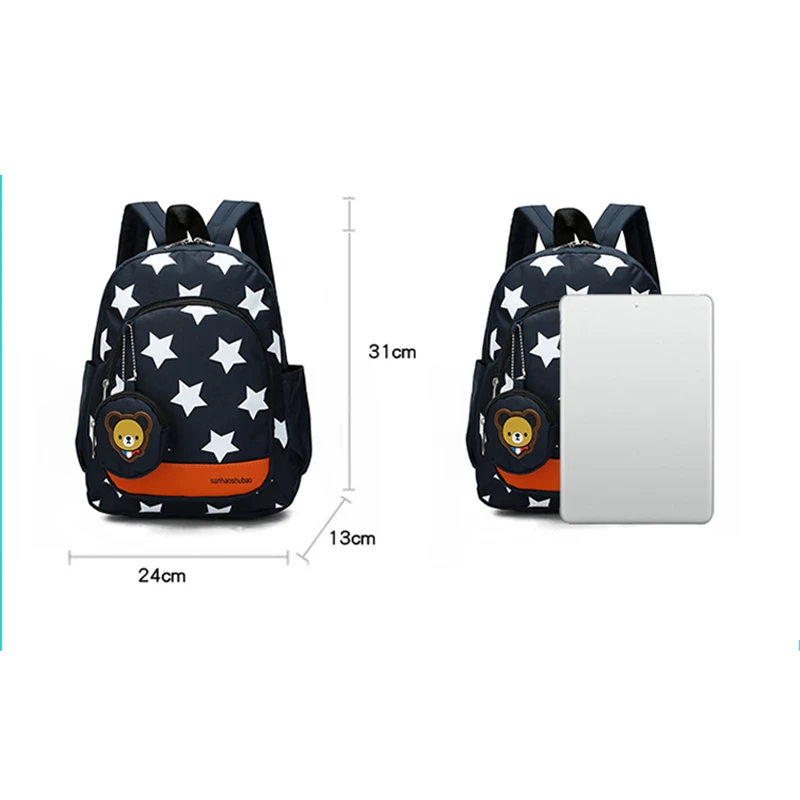 Детский школьный ранец со звездами, рюкзак для мальчиков и девочек, школьные принадлежности, 24x10x28 см