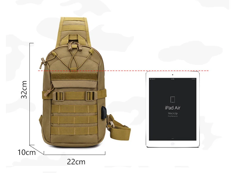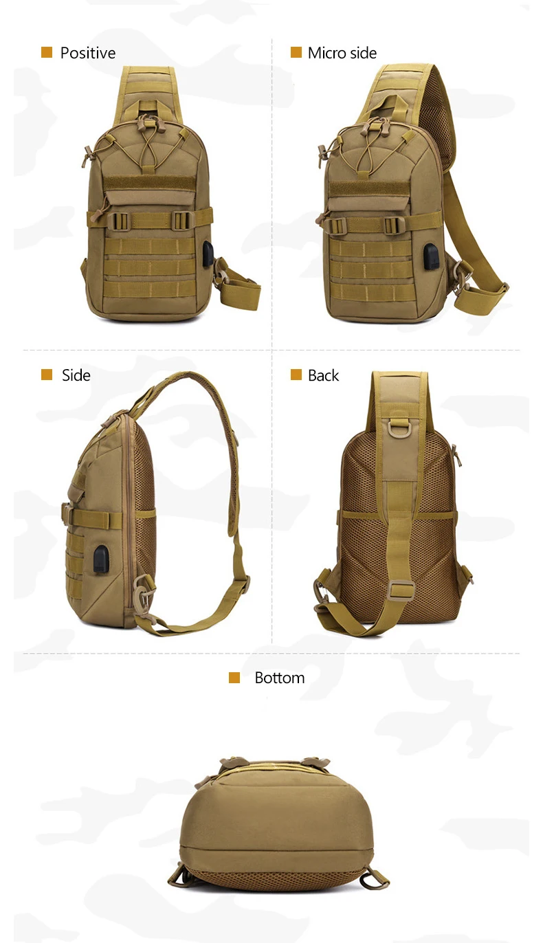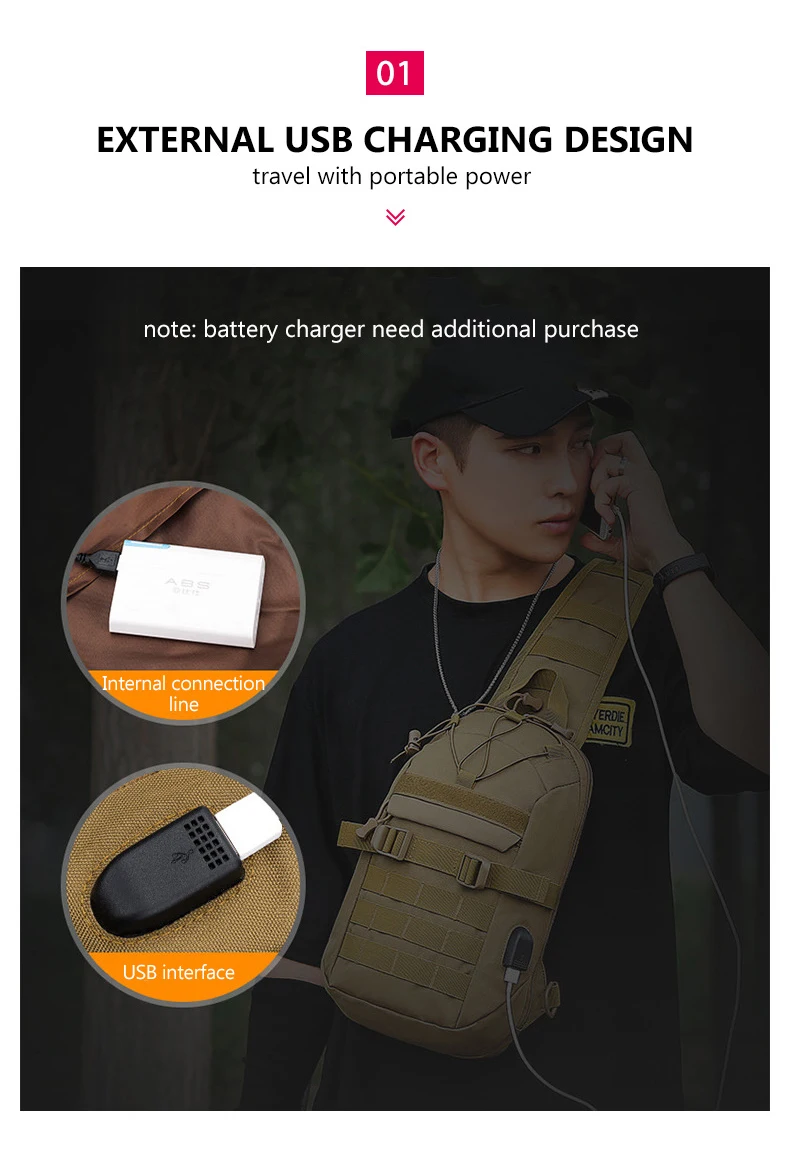 Нагрудная сумка с USB-разъемом, военная, тактическая, Армейская, через плечо, для рыбалки, кемпинга, походов, путешествий, рюкзак XA873WA