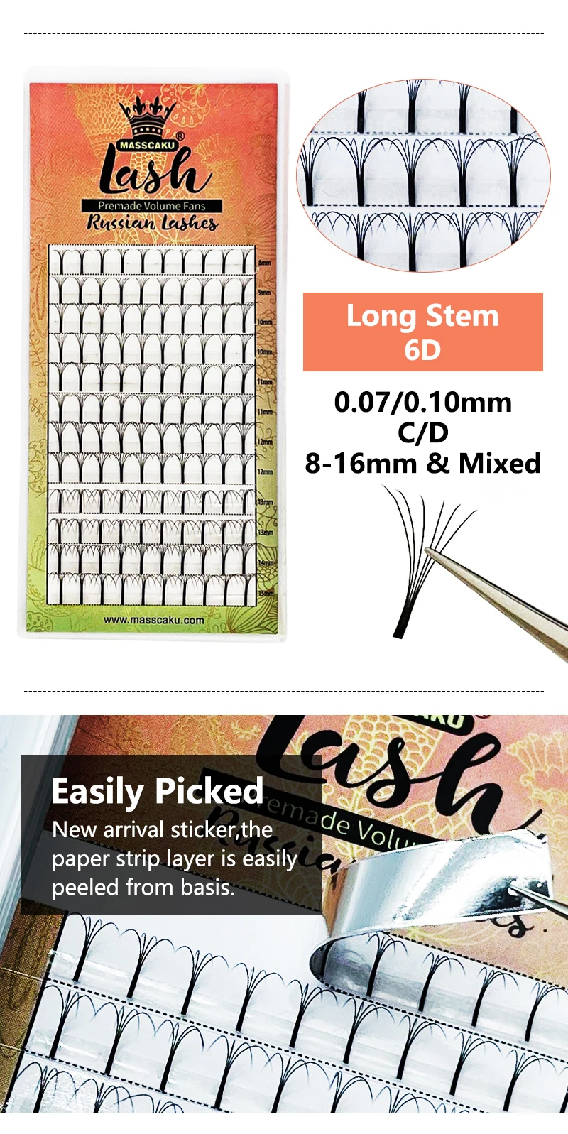 MASSCAKU 10 лотковлот новые готовые русские объемные ресницы 3d4d5d6d норковые ресницы с длинным стержнем готовые ресницы для наращивания