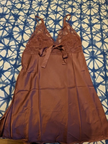очень довольна ночнушка красивая.материал приятный к телу.кружево мягкое не колется.на спине силиконовая вставка по кружеву.лямки регулируются.смотрится действительно как атлас.только следующуу закажу на размер больше потому что в более свободном вариате будет смотрется вообще сногшибательно.(хотя эта по размеру соответствует).заказ пришел быстро поDPD.вообщем продавцу со всех сторон плюсы.