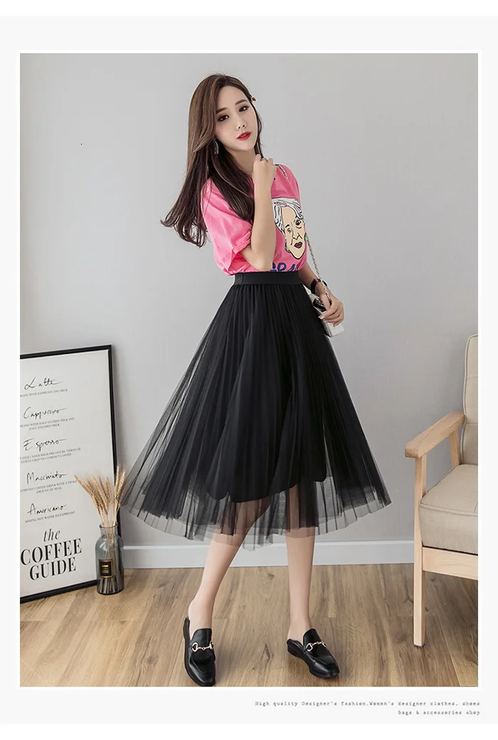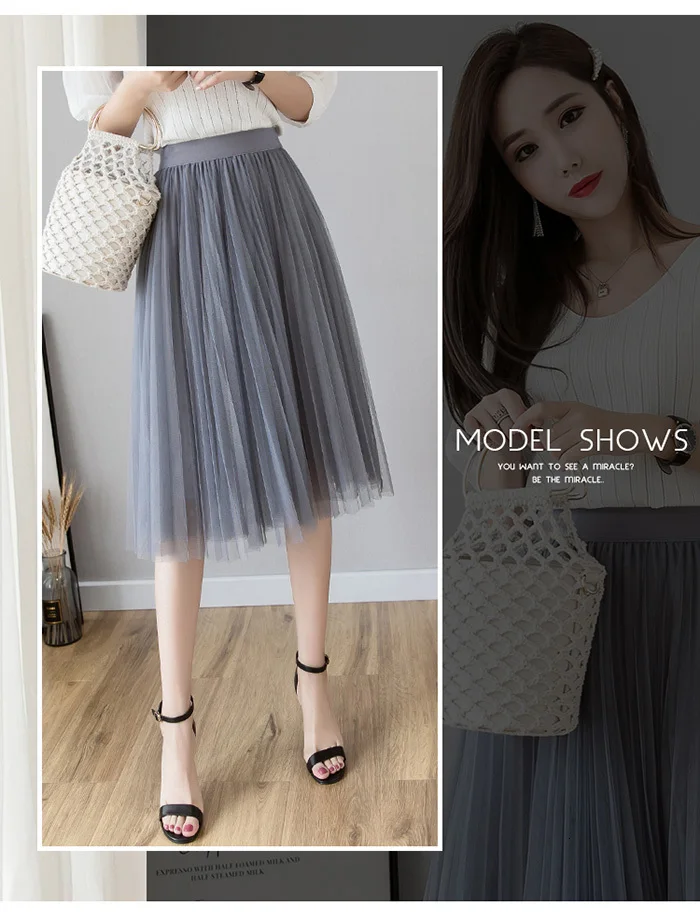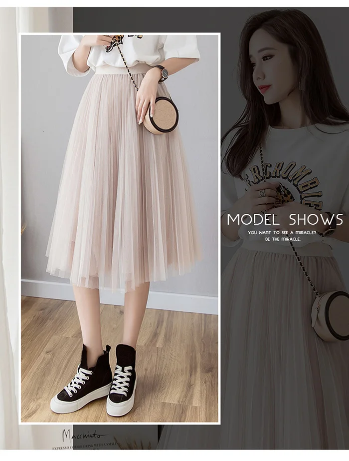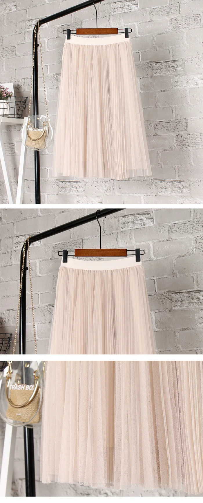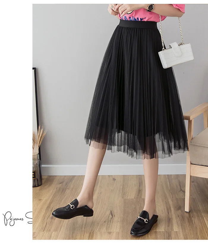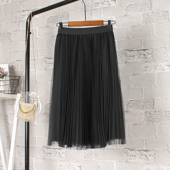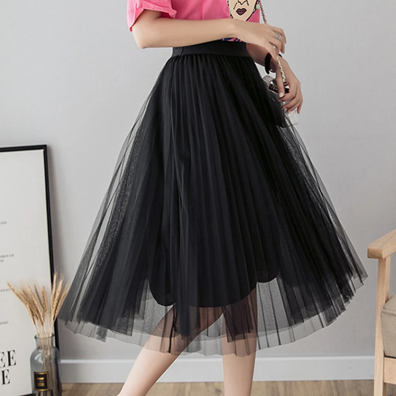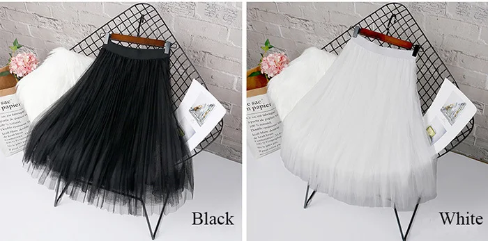 Сетчатая юбка-пачка, Женская плиссированная юбка, черные, белые женские тюлевые юбки с высокой талией, коллекция Лето-Осень-зима 2019, юбка средней длины, юбки