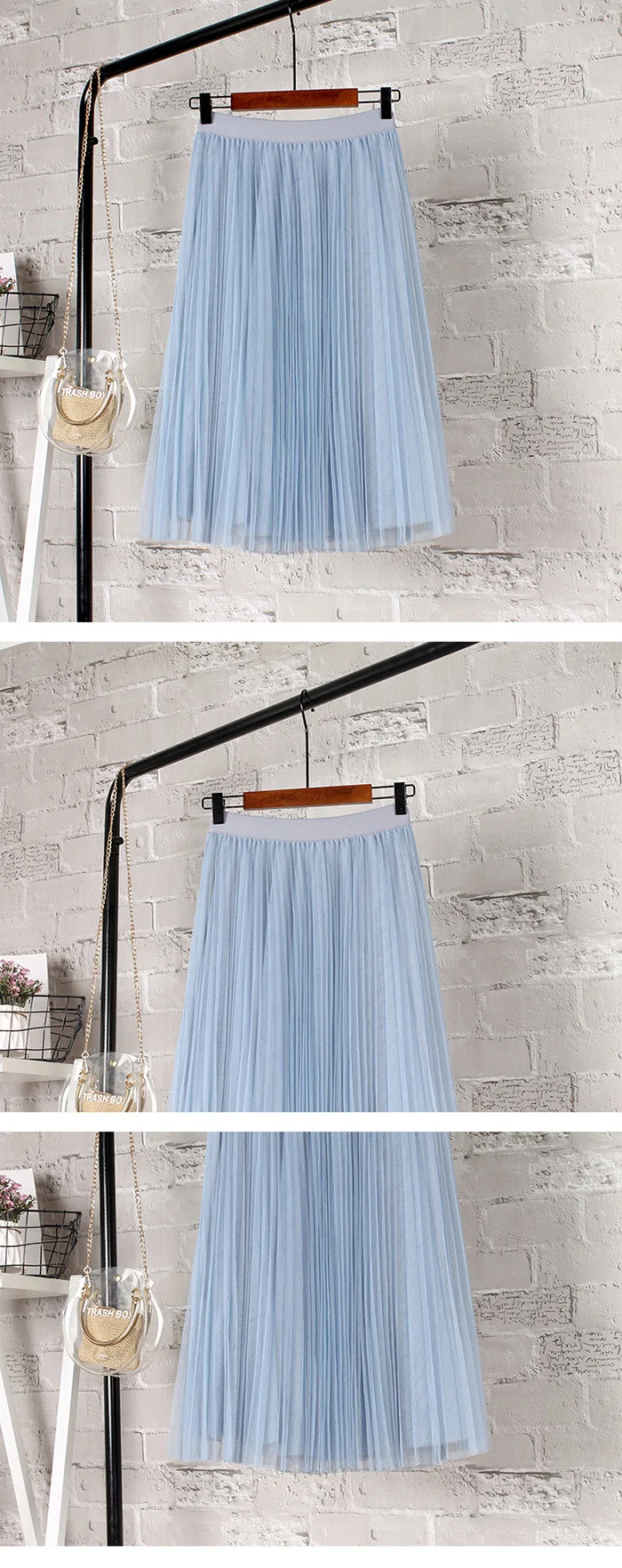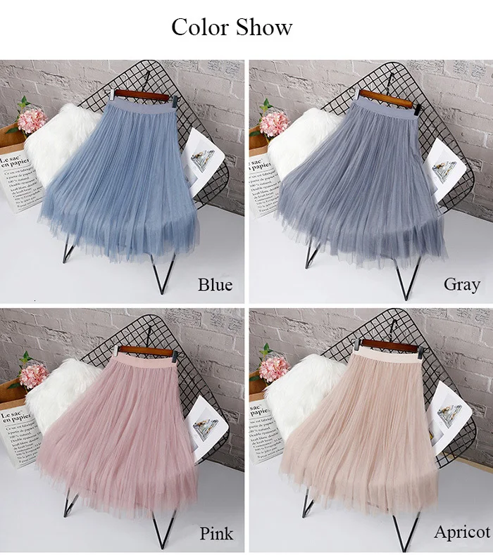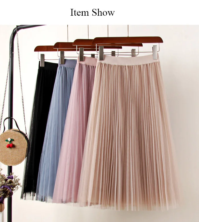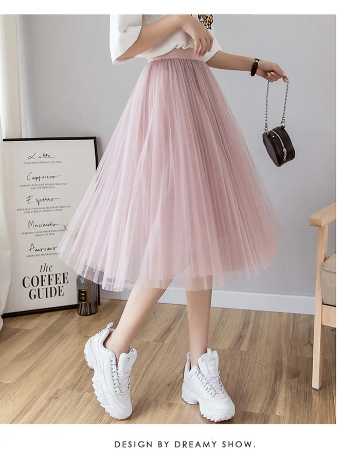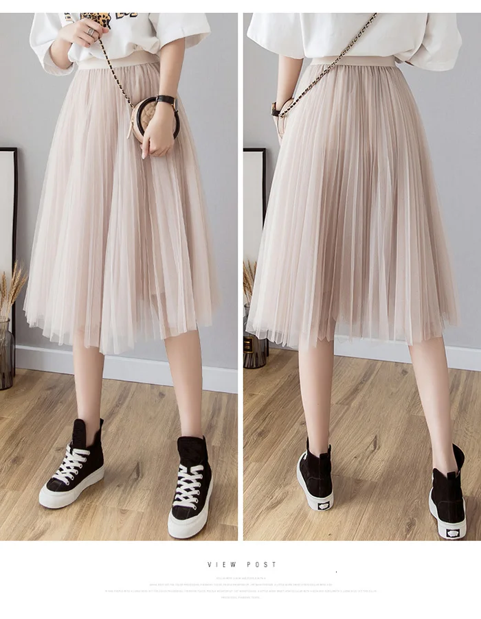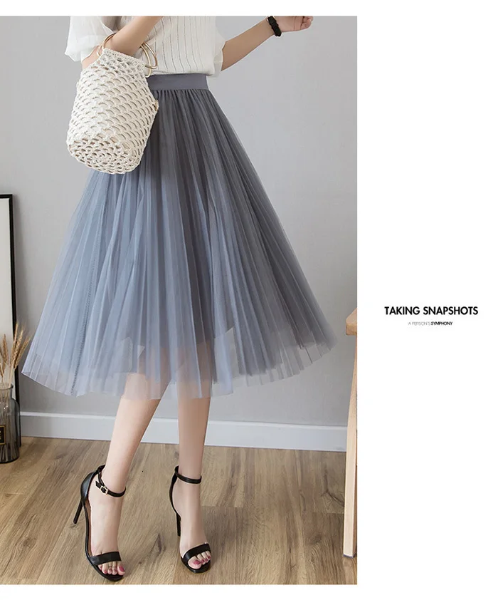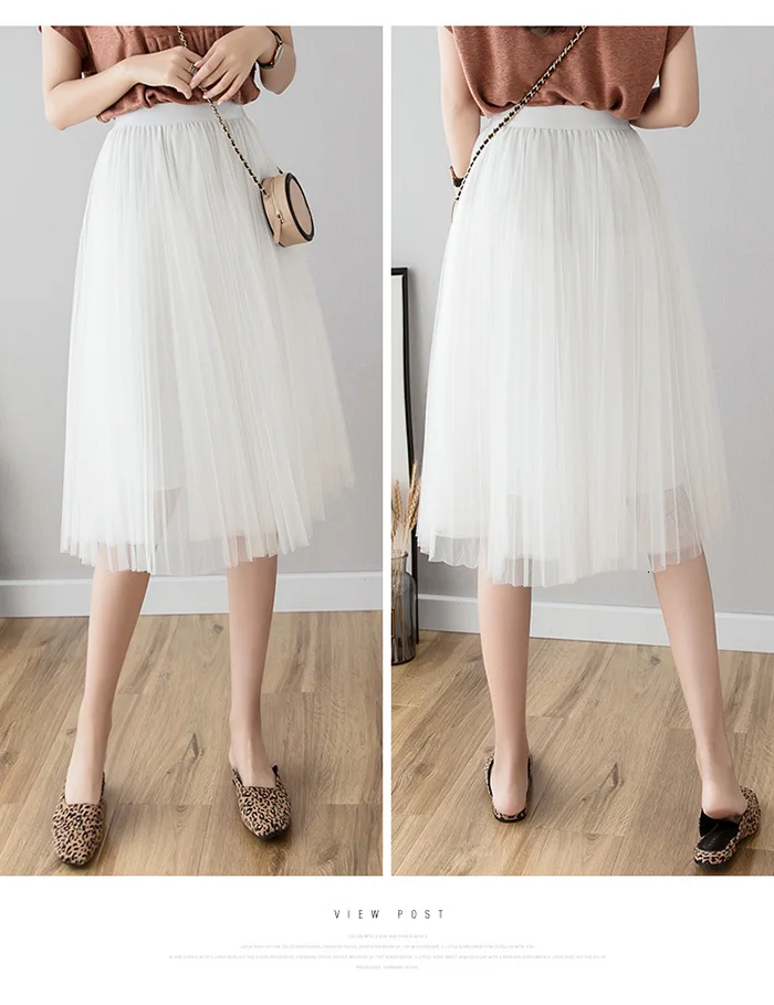 Сетчатая юбка-пачка, Женская плиссированная юбка, черные, белые женские тюлевые юбки с высокой талией, коллекция Лето-Осень-зима 2019, юбка средней длины, юбки