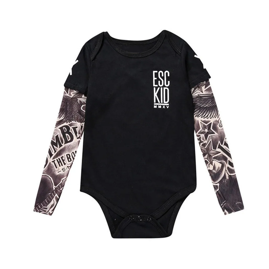 Комбинезон для маленьких мальчиков с длинным рукавом и тату-принтом, хлопковый комбинезон в стиле пэчворк, Осенний комбинезон для новорожденных, костюм для малышей с стежками