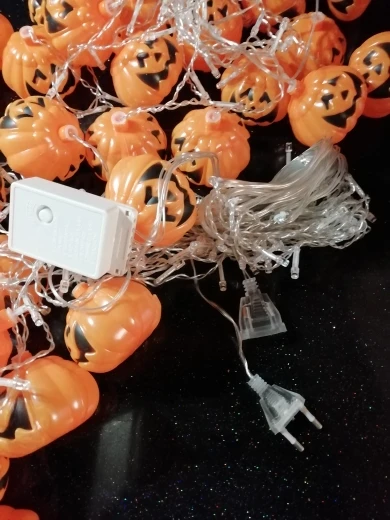 Хорошая гирлянда, была доставлена в целости и сохранности. Все лампочки работают. Тыковки хорошо раскрашены, царапины и вмятины отсутствуют. Товар был бережно обёрнут двухметровой пупырчатой плёнкой. Сама гирлянда имеет 8 режимов. В темноте светится довольно ярко, может осветить маленькую комнату