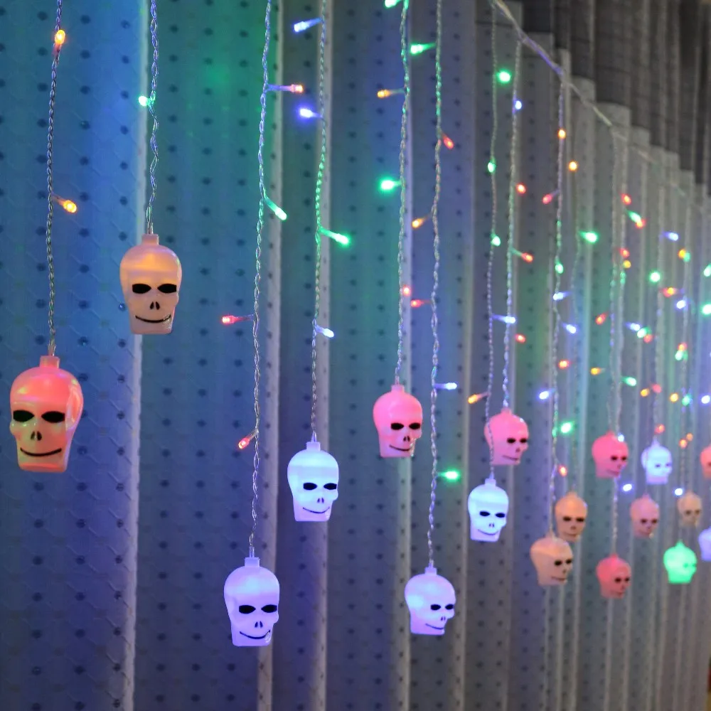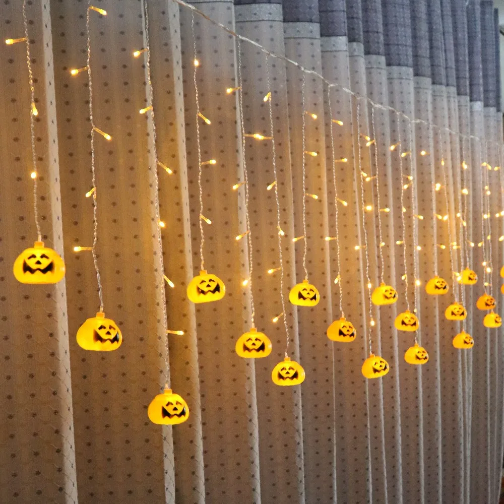 Хэллоуин декоративные светодиодные фонари череп Тыква СВЕТОДИОДНЫЙ занавес струнные огни 3D Хэллоуин светильник-привидение вечерние домашние вечерние DIY Декор