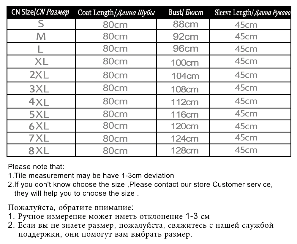 Обратите внимание, что:1.Это зимнее пальто, поэтому, как правило, мы советуем покупателю выбрать размер немного больше на 4-6 см, чем размер бюста, так что вы можете носить одежду внутри2.Если вы не уверены, какой размер выбрать, пожалуйста, свяжитесь с нами, мы поможем вам выбрать.3.Из-за проблемы съемки светильник и за разных цветовых настроек мониторов фактический цвет товара может незначительно отличаться некоторые пальто будет иметь отличие в цвете, если вы имеете что-то против, вы можете связаться с сотрудниками Отдела по обслуживанию клиентов, чтобы понять эту проблему.