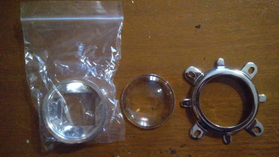 Комплект линза+отражатель+оправа. Стекла чистые,отражатель чистый. Упаковано всё хорошо, доставка быстрая, около двух недель в Краснодар.
