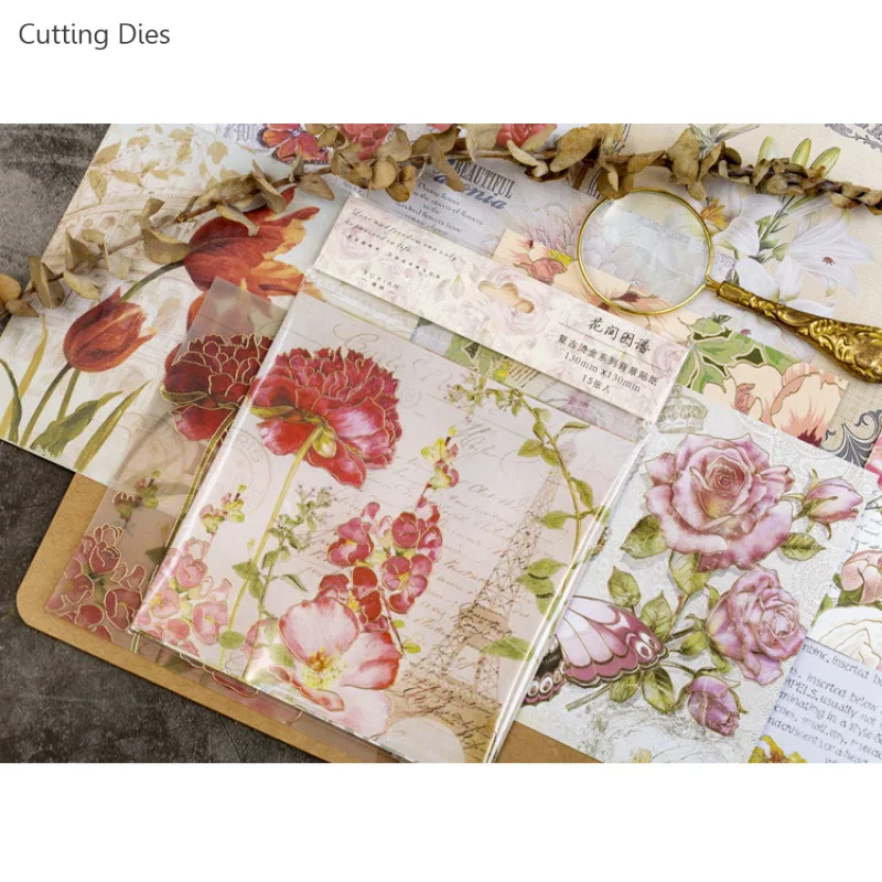 15 листовпартия, винтажный цветочный велюм, самоклеящийся бумажный фон, наклейки для скрапбукинга, поделки из декоративные бумажные для поделок бумаги