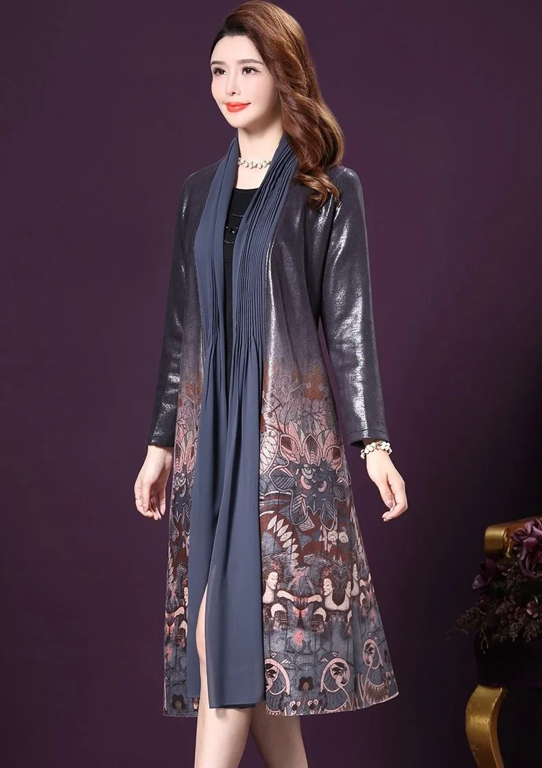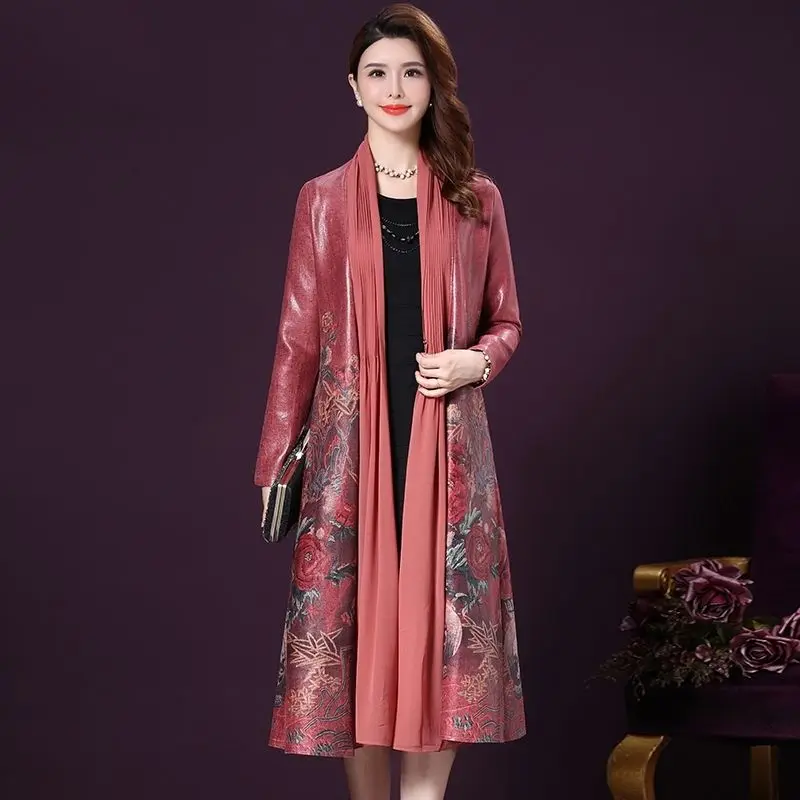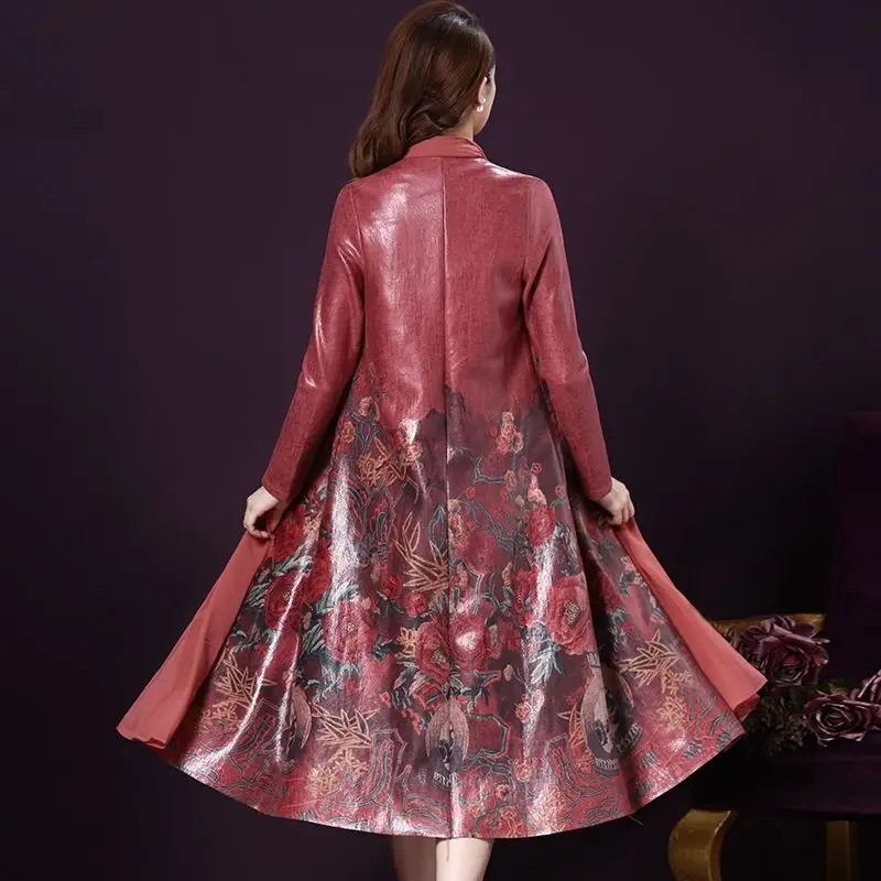 Весна Осень винтажный 4xl красный серый цветочный узор пэчворк кардиган пальто для женщин, женские длинные ветровки пальто