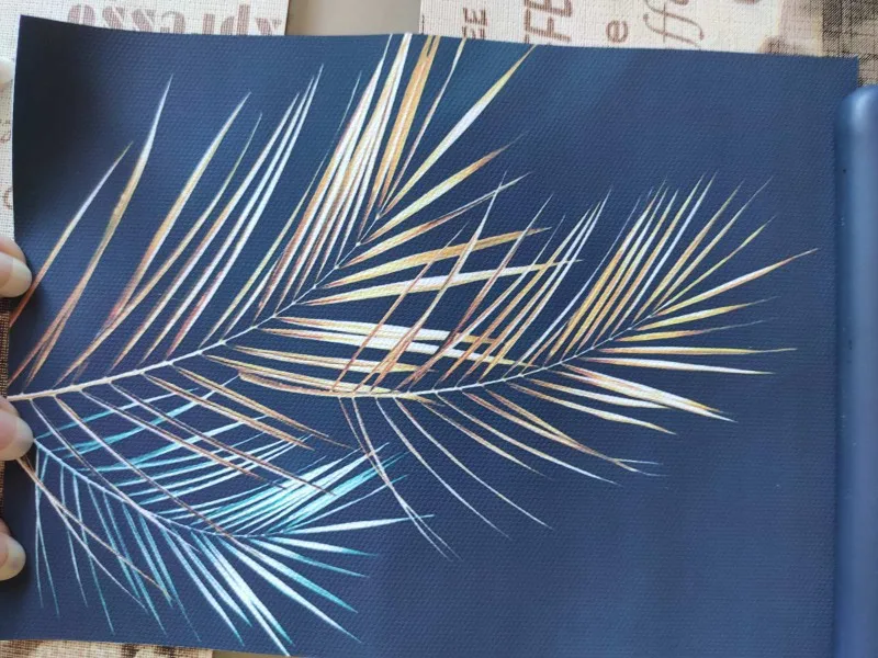 листики чуть отличаются от фото,но качество очень хорошее,будто на ткани сделано,холст какой то хб материал,мне понравилось.Спасибо продавцу)),доставка до Спб около 3 недель примерно,трек отслеживался
