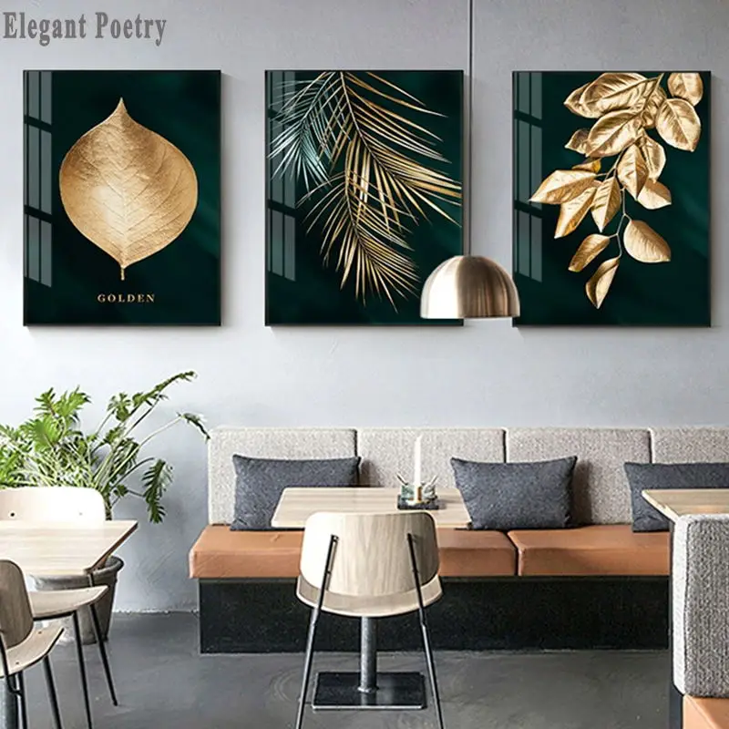 Абстрактное Золотое растение, листья, картина постер на стену, современный стиль, печать на холсте, искусство, проход, гостиная, уникальное украшение