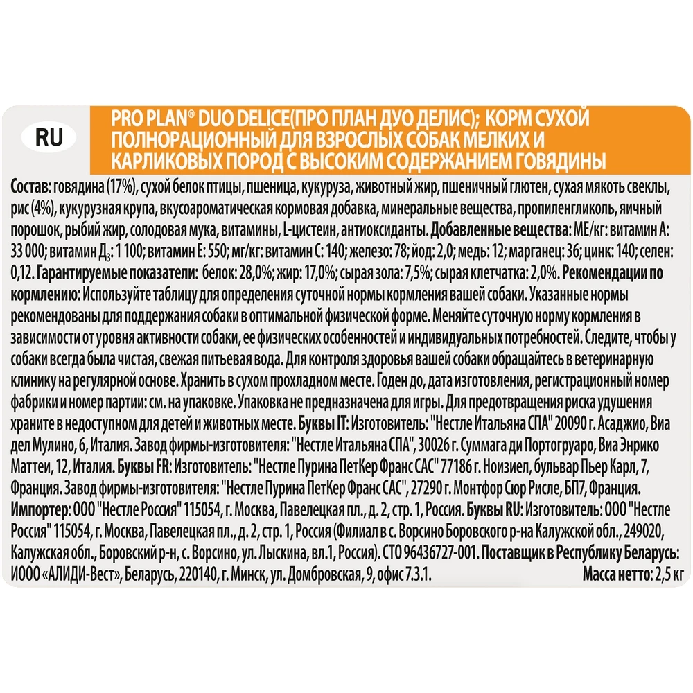 Pro Plan Duo Delice Small Mini сухой корм для мелких и карликовых пород, Говядина, 0,7 кг.