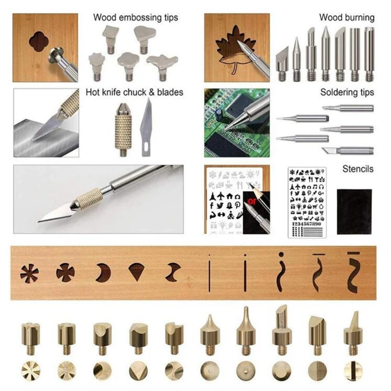 Деревянный комплект для выжигания, паяльник с регулируемой температурой, набор инструментов сделай сам, набор для тиснения, гравировки, Пирография, комбинация