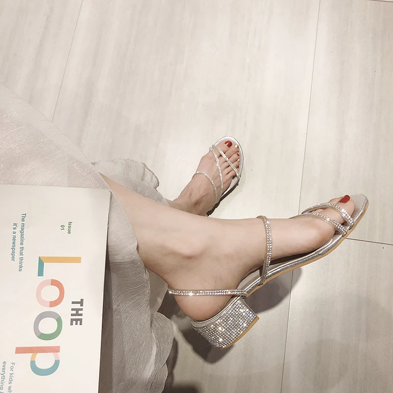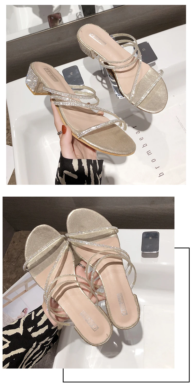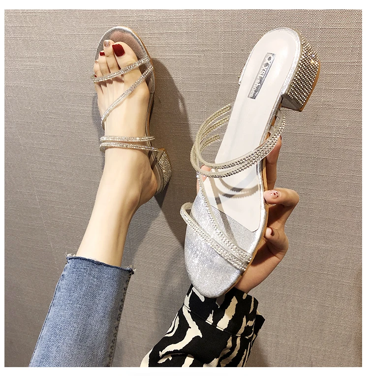Женские босоножки на толстом каблуке Koovan, новинка для ношения двумя способами, вечерние туфли, сказочные стразы, 2020