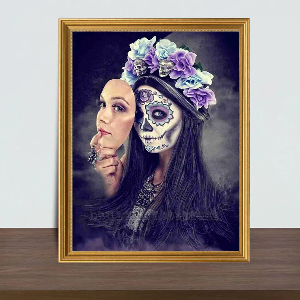 5D алмазная живопись сделай сам, сахарный череп, полная вышивка, вышивка крестиком, мозаика, вышивка, украшение для стен, подарок
