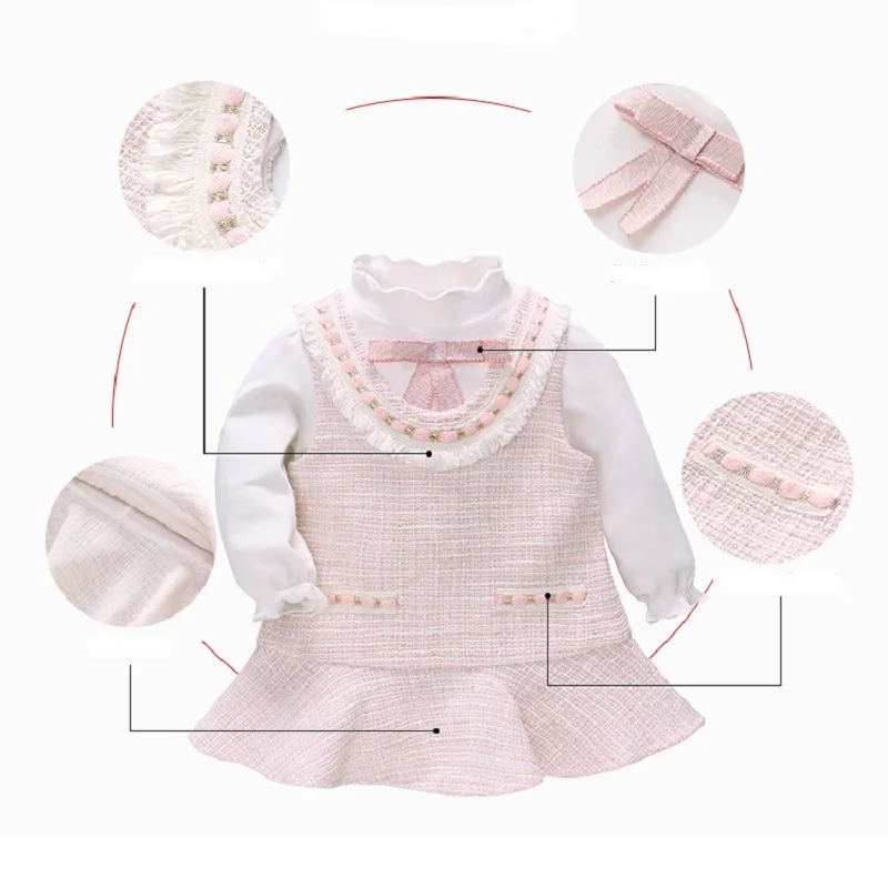 Vlinderплатье для маленьких девочек одежда для малышей милое платье принцессы на весну и осень комплект из 2 предметов, платья с длинными рукавами для девочек на день рождения, 9 months to 4 years Old