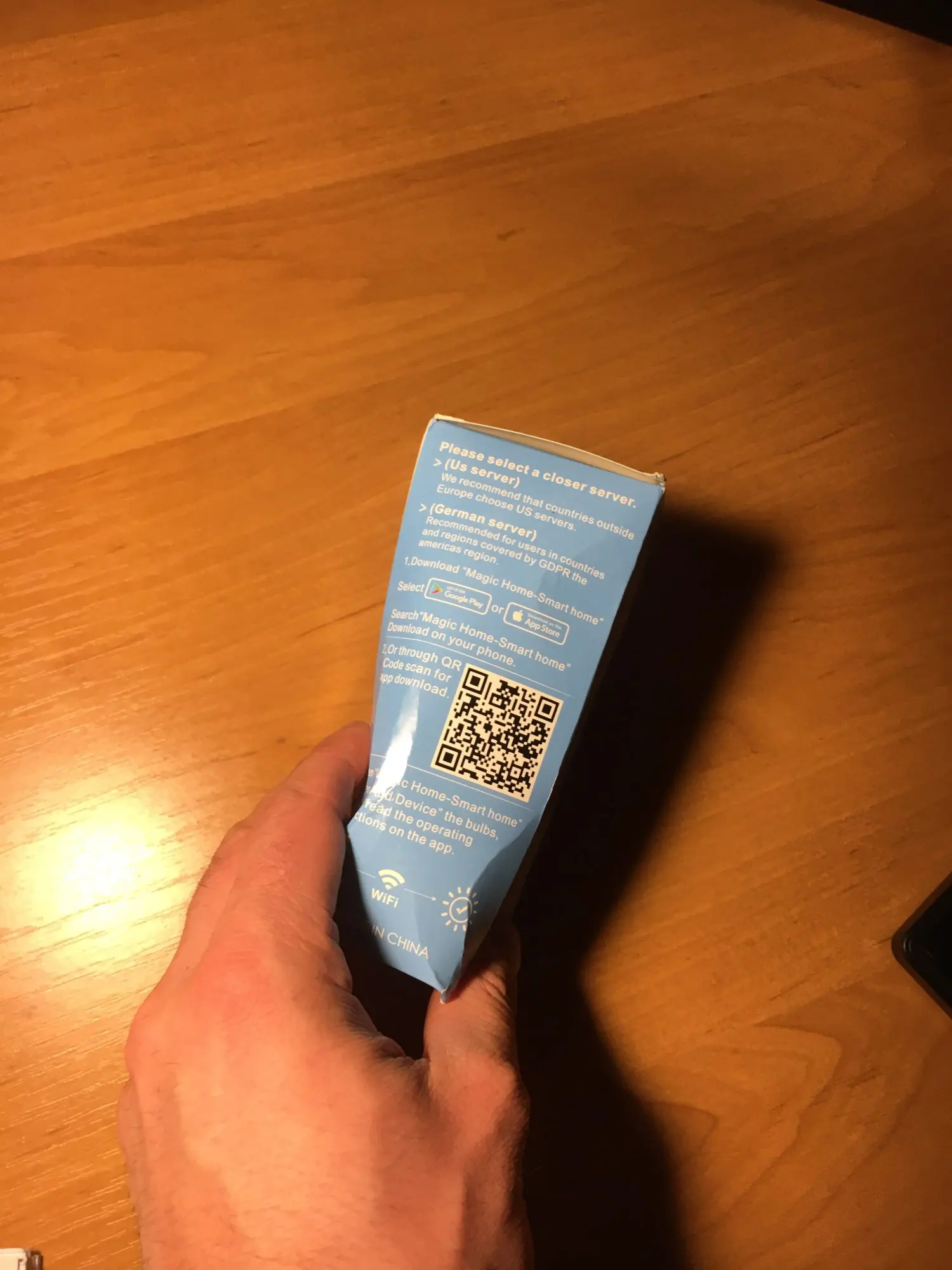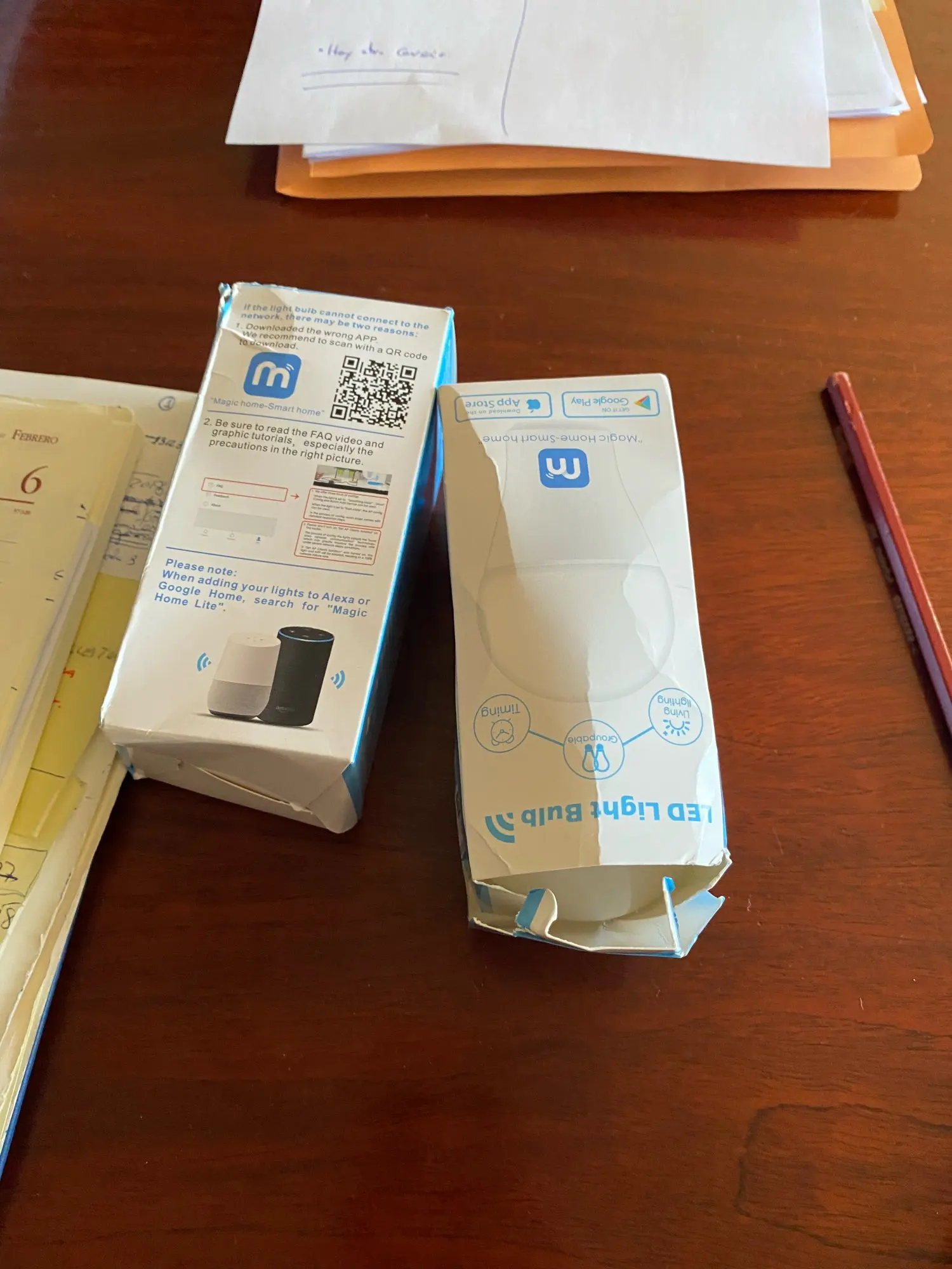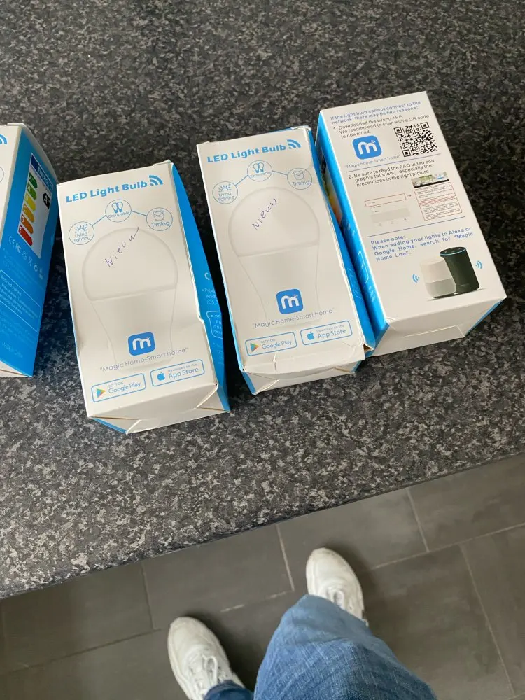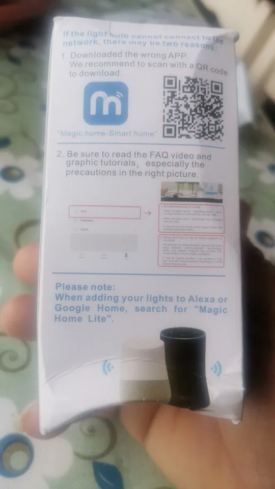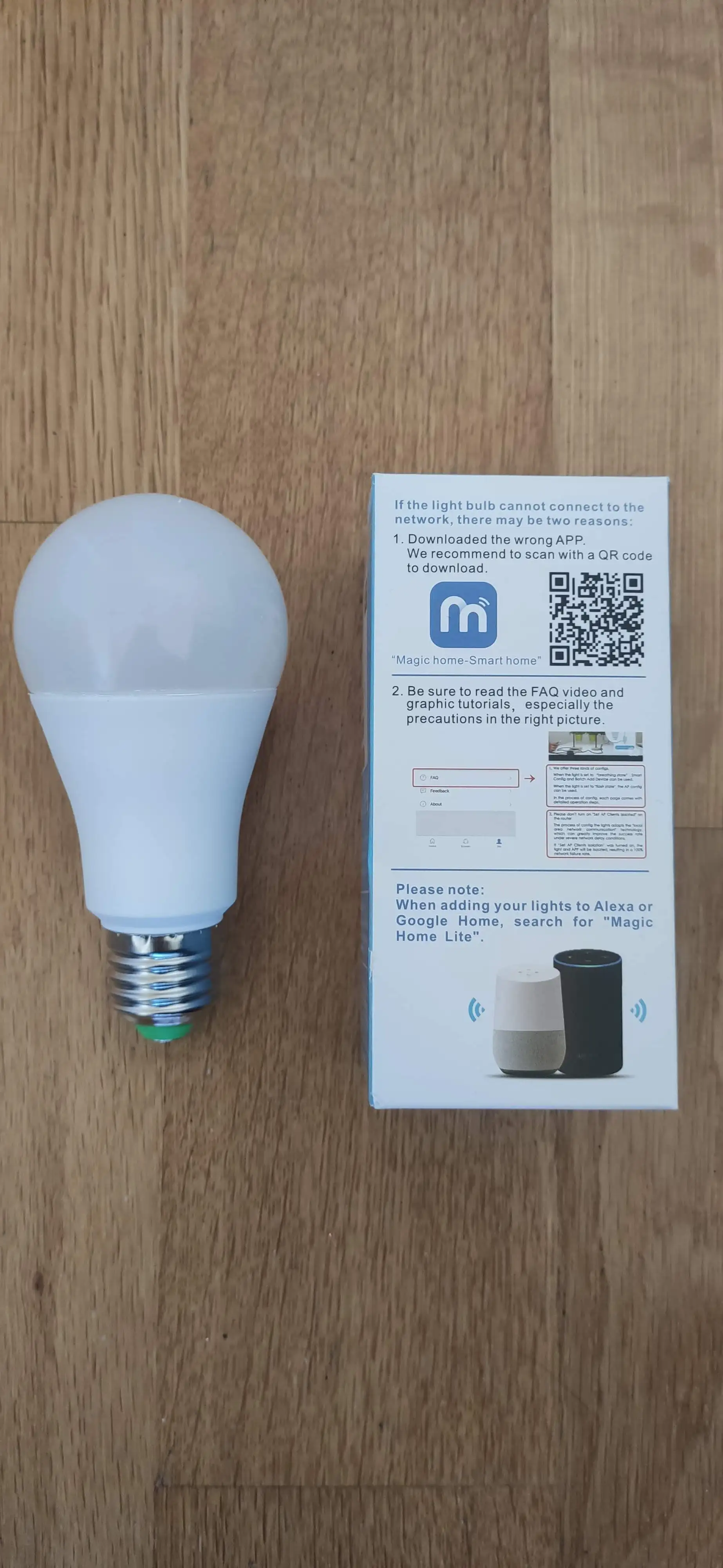 E получил сегодня, и все идеально подошло довольно быстро и протестировано 2 и работает очень хорошо подключается к вашему приложению и с совершенной alexa, что бы ни пробовал соединить их с Приложение magic home у меня есть на телефоне для другой лампочки, и это не так, в play store есть 2 приложения magic home one pro, и это magic home-smart Для дома