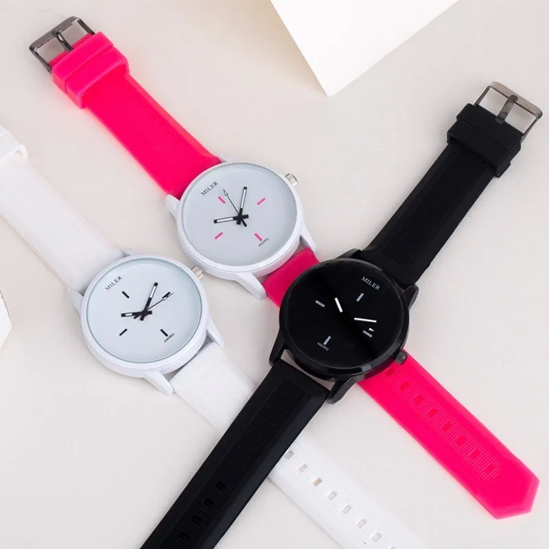 Горячее предложение, новые оригинальные мягкие силиконовые наручные часы MILER с ремешком, желе, кварцевые часы для женщин, женщин, влюбленных, черные, белые