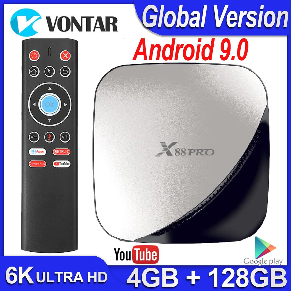 ТВ приставка Android 9 9,0 Smart TV BOX X88 Pro 4 Гб Оперативная память 32GB64GB128 ГБ Встроенная память Android TV BOX 4K 60fps RK3318 TV Box Google плеер Youtube
