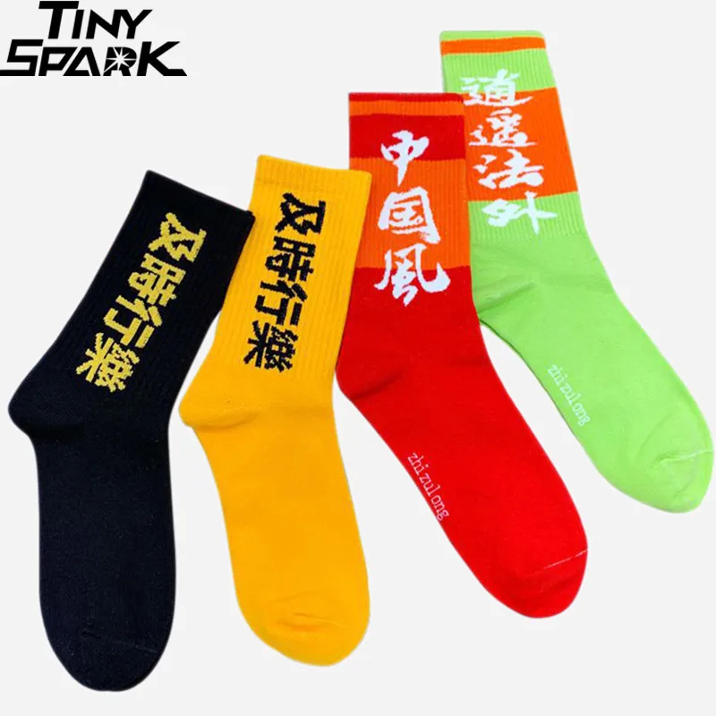 Мужские носки в стиле хип-хоп Harakuju, уличные носки с китайским принтом Kanji, хлопковые модные хипстерские забавные носки для скейтборда, черные, красные