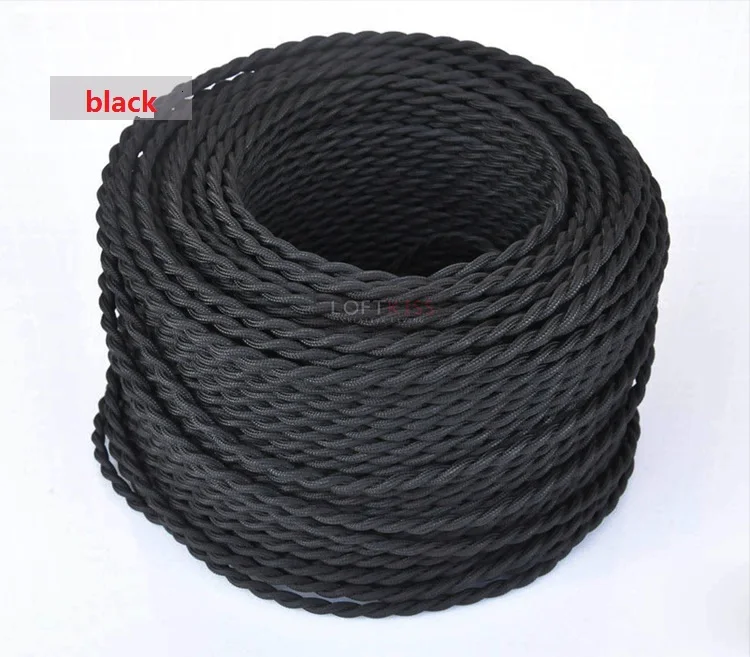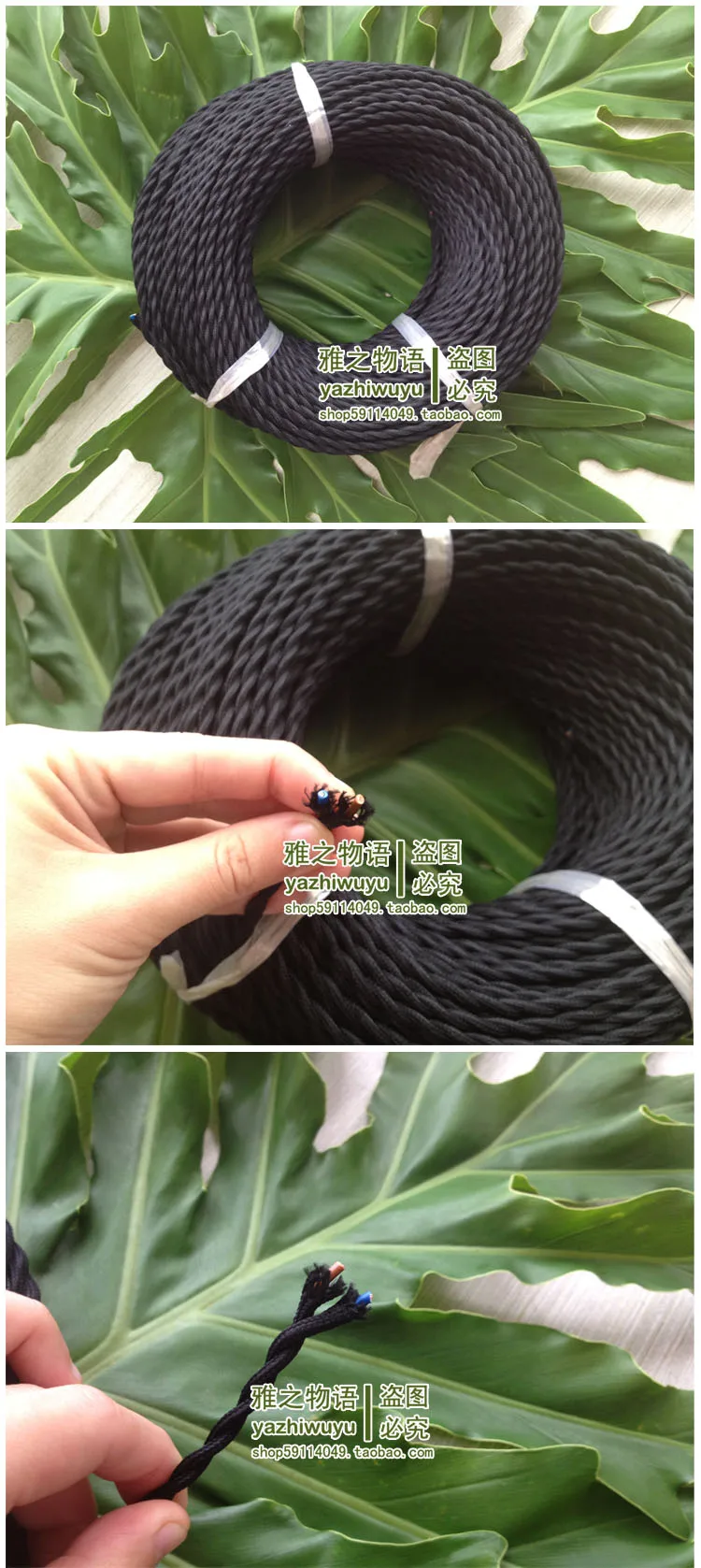 Черный 51020 метра 2-жильный Электрический Трос винтажный старинный Плетеный витой светильник из ткани кабель плетеный Шелковый гибкий шнур
