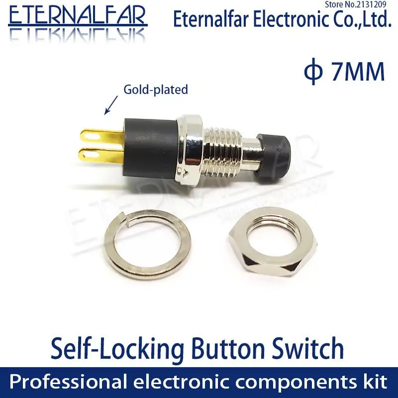 PB05A, Высококачественная самоблокирующаяся Мини-кнопка SPST с нормально открытым нажимным выключателем, маленькая кнопка 7 мм с позолоченным включением и выключением, 1 А, 250 В переменного тока