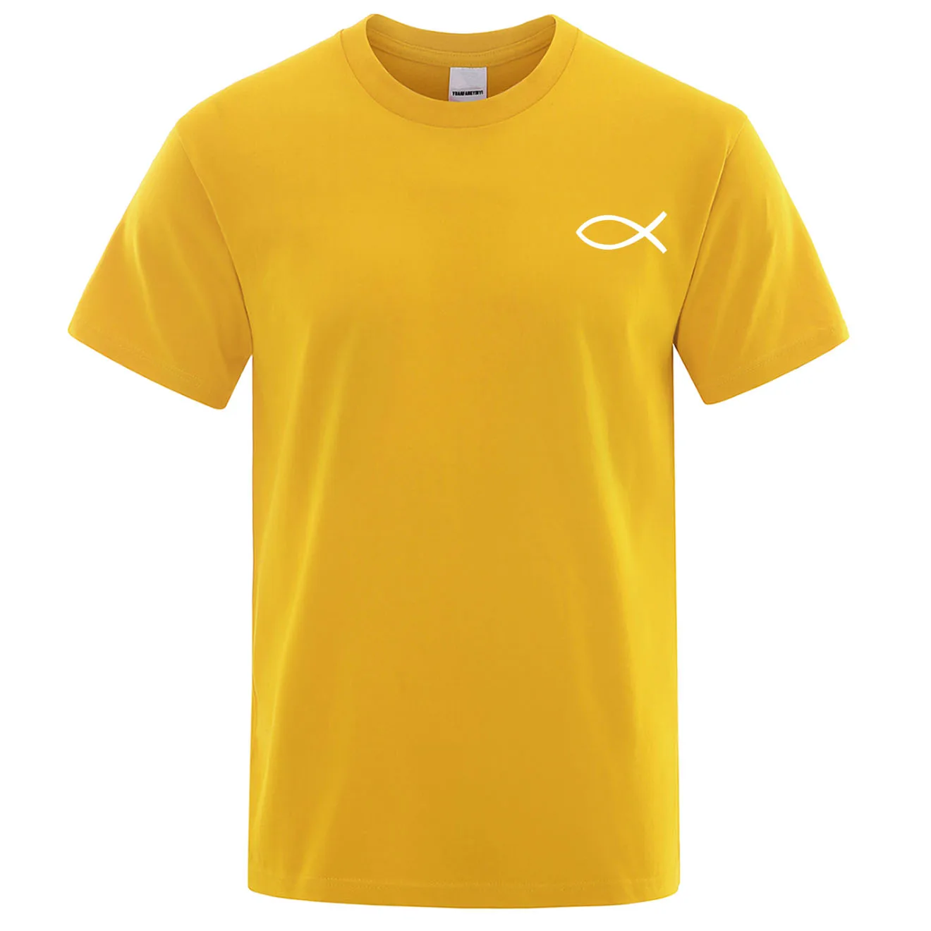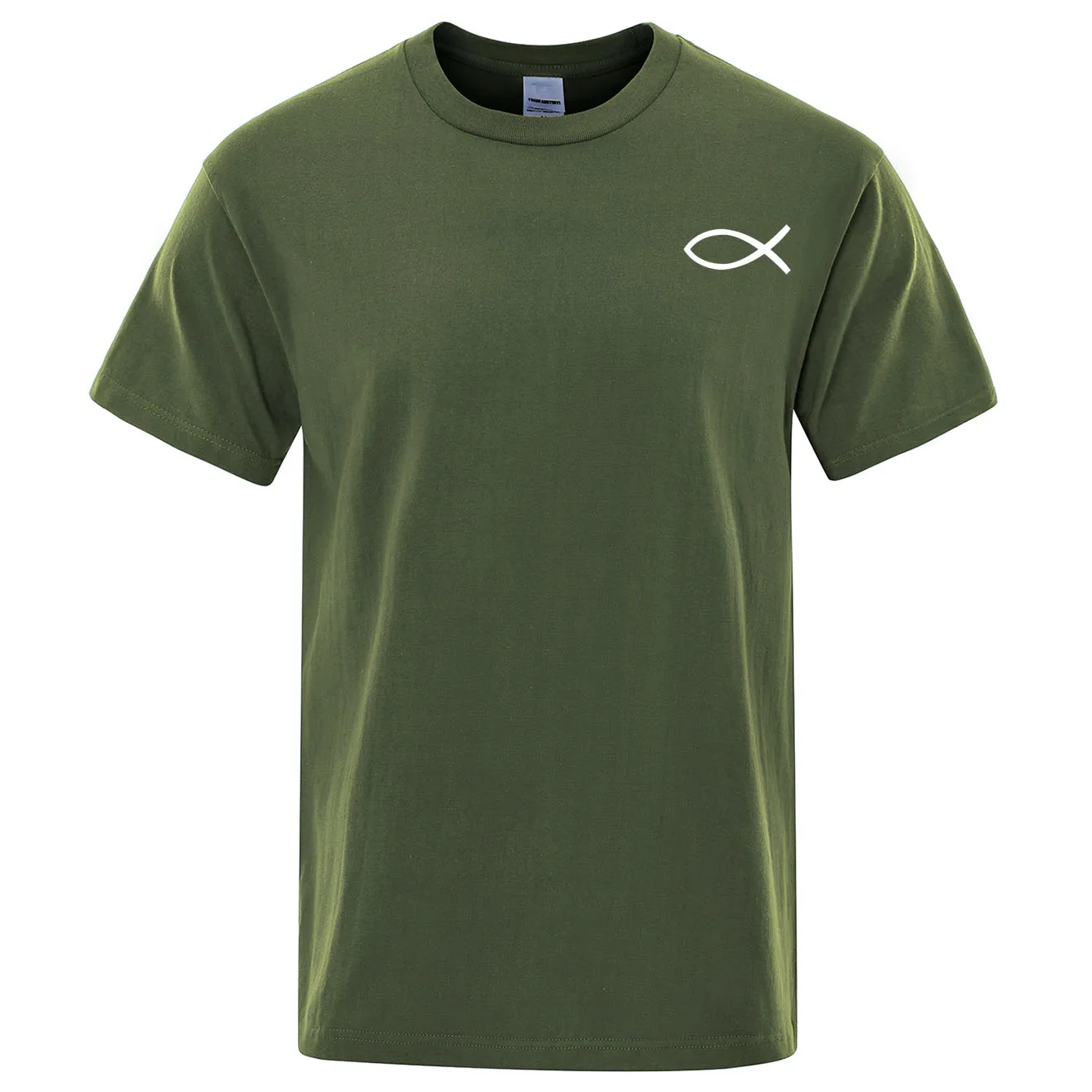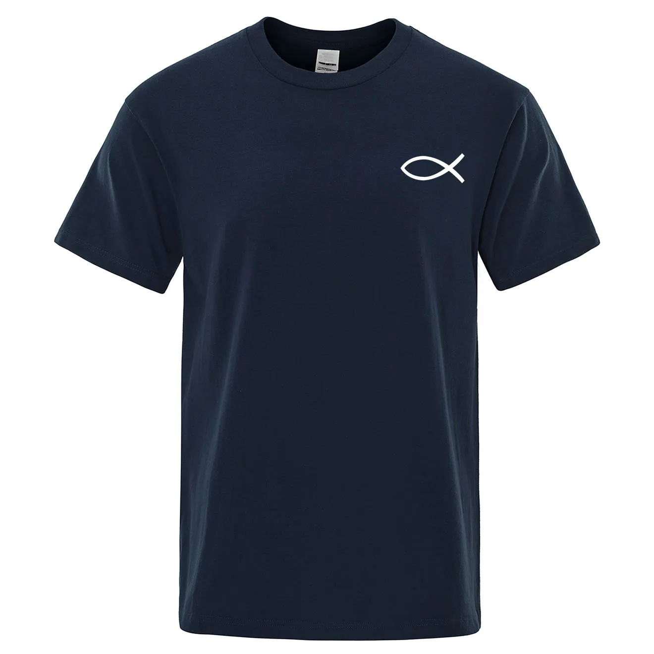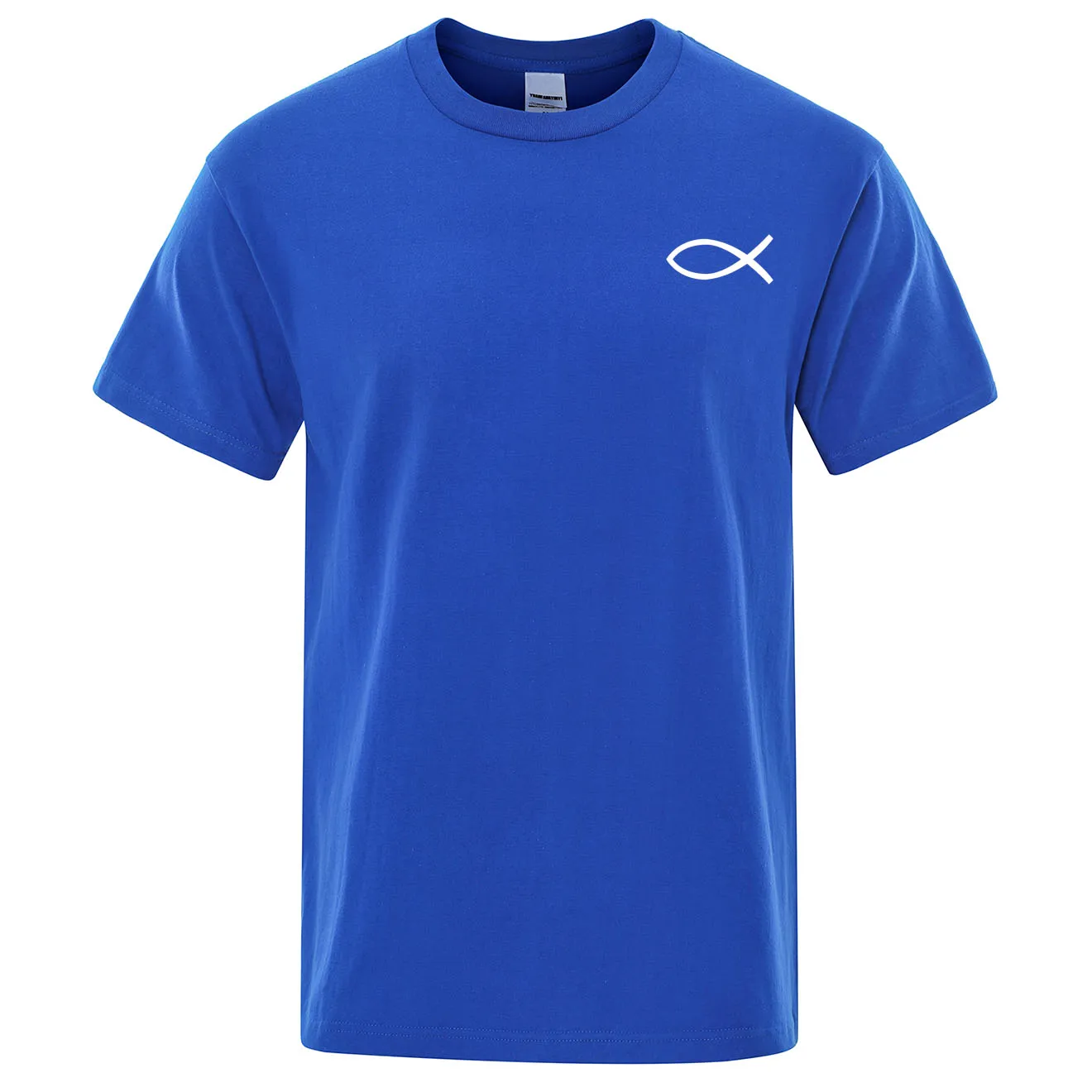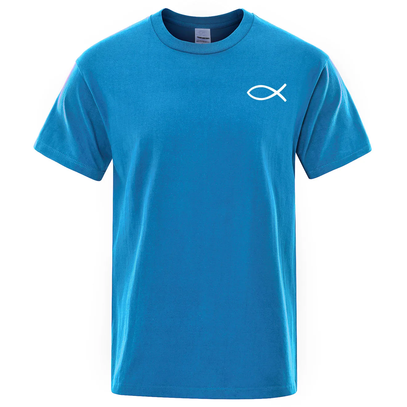 Футболка мужская с короткими рукавами, брендовая тенниска с принтом Кристиан Иисус Рыба, лето 2021