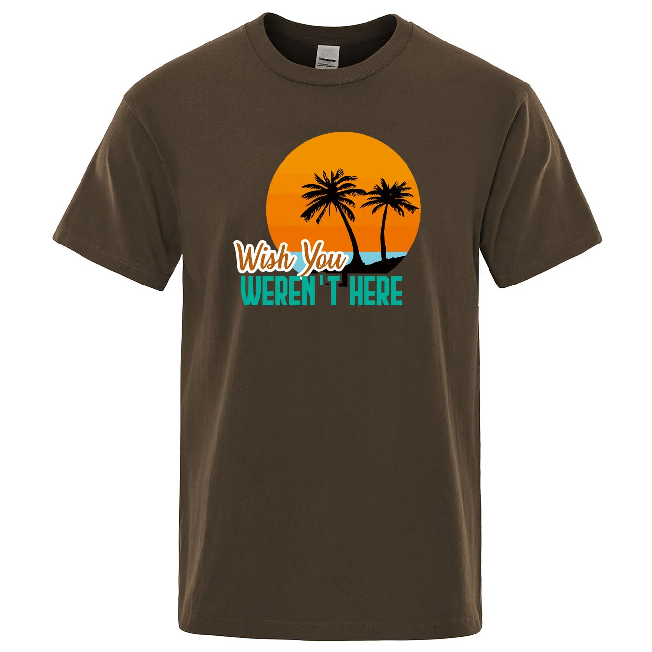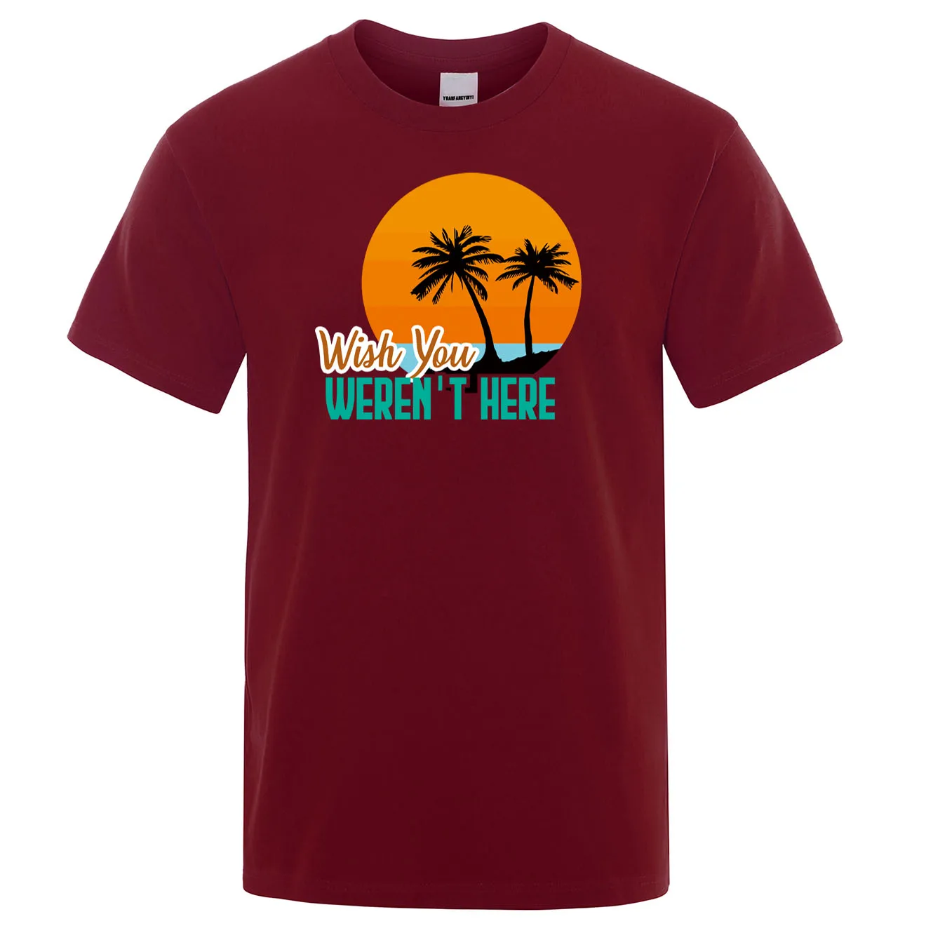 WISH YOU wernot HERE Печатный дизайн с пейзажем футболка с круглым вырезом и коротким рукавом мужские футболки летняя мужская одежда забавная саркастическая футболка