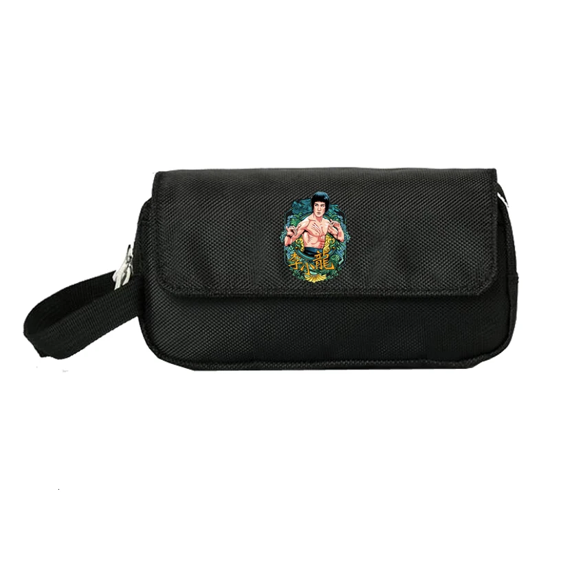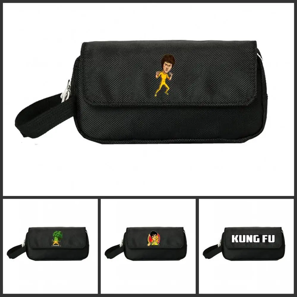 Чехол для карандашей с аниме, китайскими звездами кунг-фу, Брюсом Ли, женская косметичка, сумка для макияжа, детская, Студенческая сумка с двумя карандашами