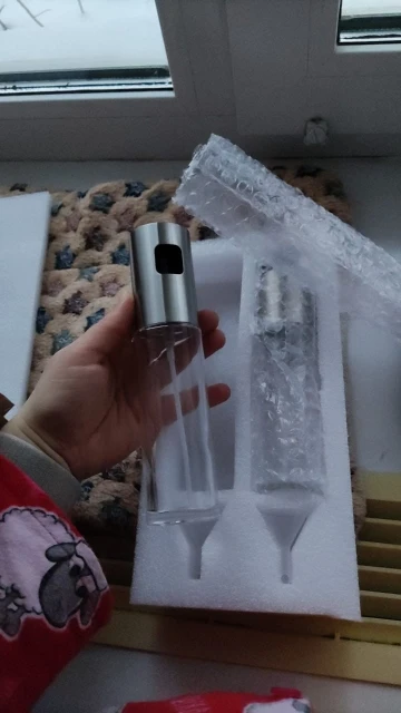Давно хотела такой распылитель для масла!Товар пришел очень быстро,доставил курьер до двери.Полностью соответствует описанию, даже наяву более интересный, стекло достаточно толстое, есть воронка для наполнения! Очень симпатичная штука!