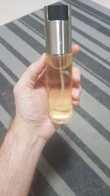 Все соответствует описанию. Тяжёлый флакончик. Стекло. Масло распыляет хорошо, не струёй (масло комнатной температуры). Через три дня после заказа принес курьер на дом. Удивлен)) Хорошо все упаковано.