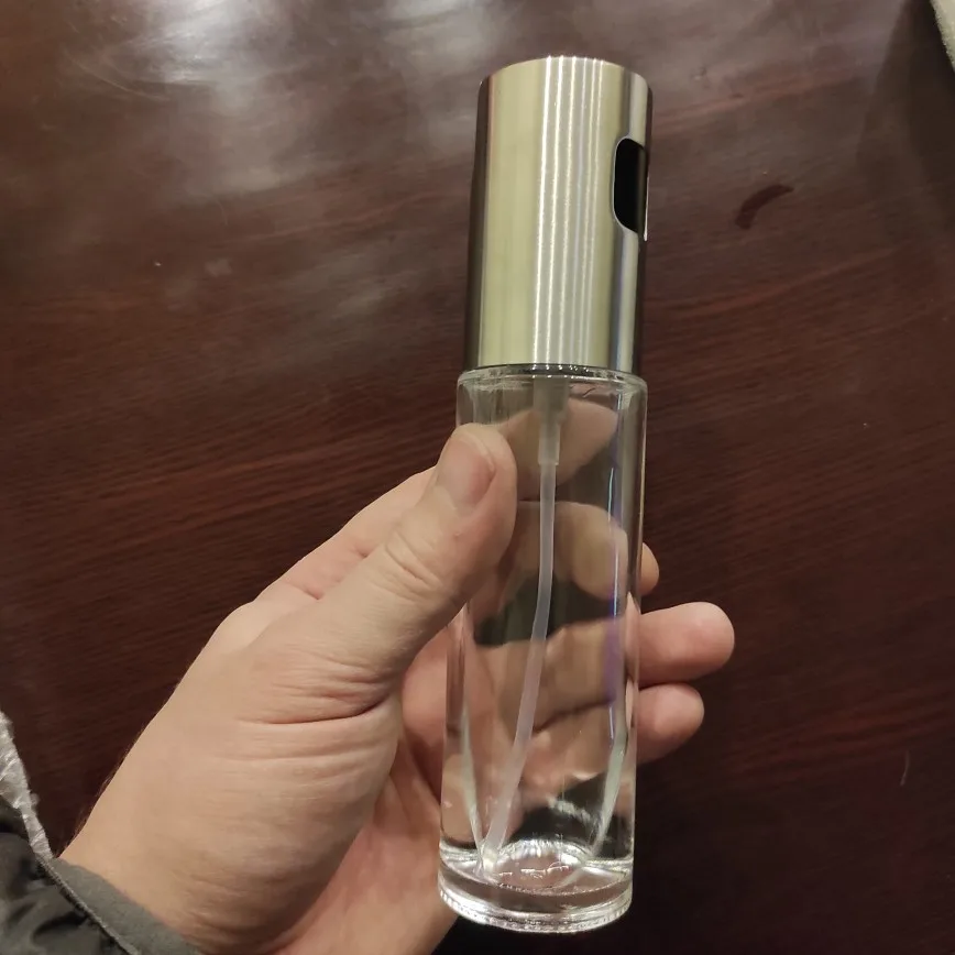Пришло все целое. Бутылочка из стекла. Распыляет, но подтекает в месте распыления. Очень жаль, тк идёт расход масла. И стекает по бутылке.