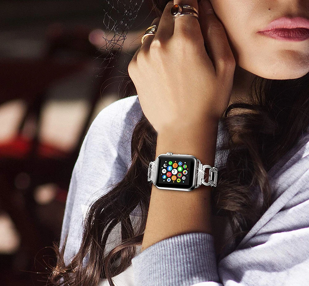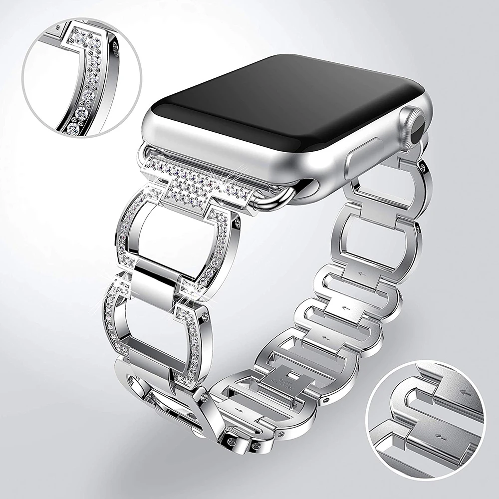 Металлический ремешок с бриллиантами для Apple Watch 44 мм, 41 мм, 42 мм, для iwatch 7 SE, 6, 5, 4, 3, 38, 45, 40 мм, нержавеющая сталь