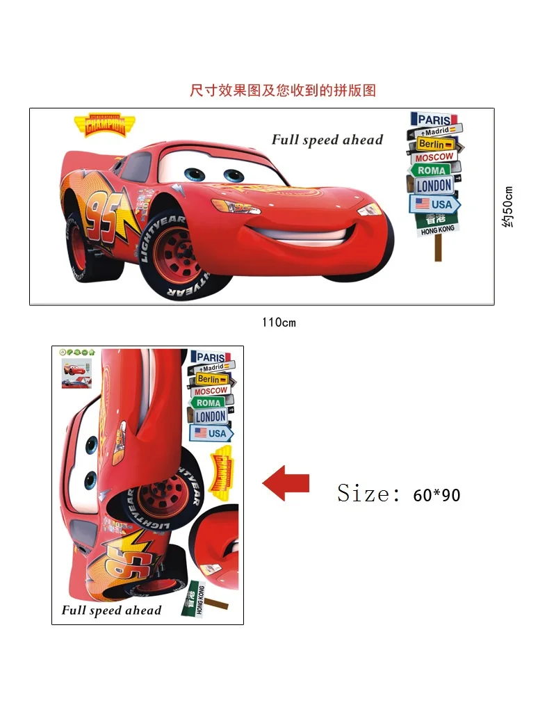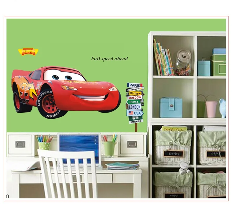 Молния 3D мультфильм автомобили Настенный декор наклейки для мальчика спальня самоклеящиеся обои для детской комнаты Плакат Фреска молния Настенная Наклейка