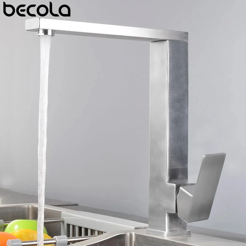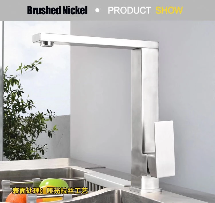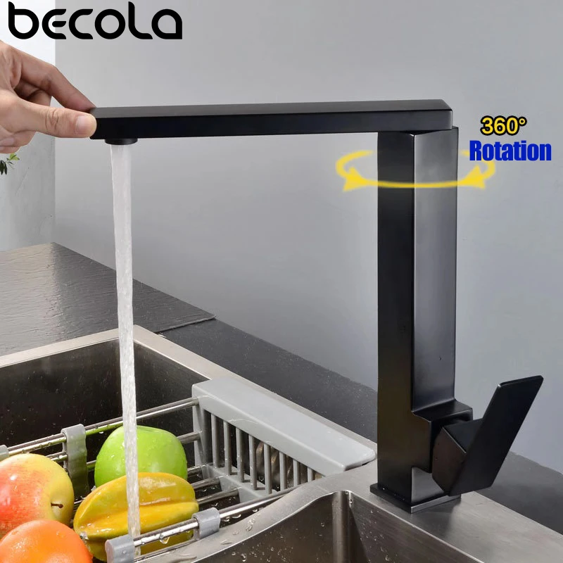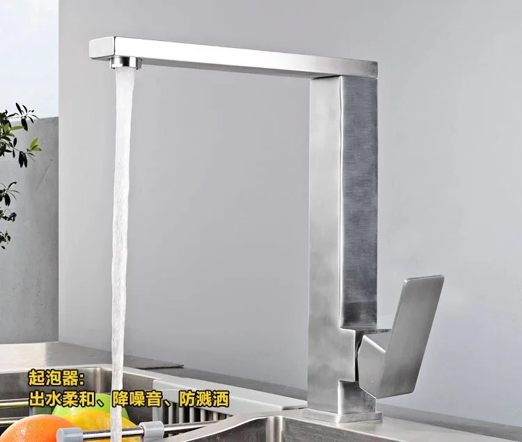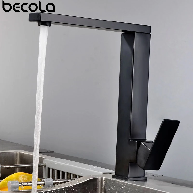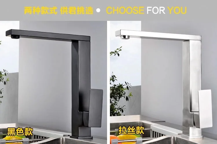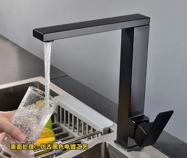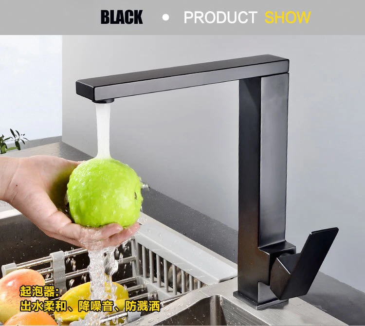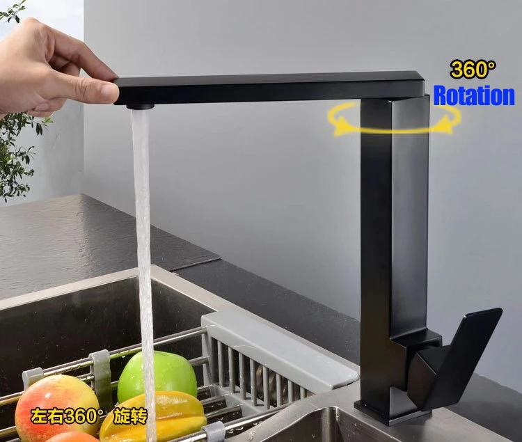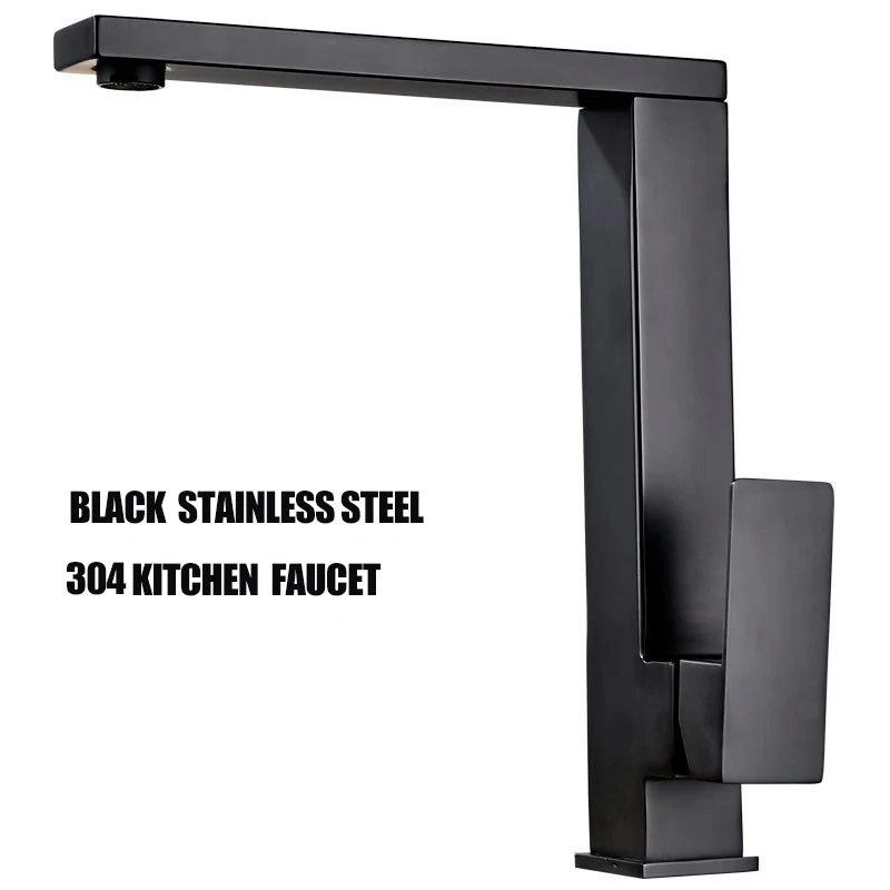 Черный смеситель для кухни из нержавеющей стали 304, вращающийся квадратный бессвинцовый смеситель для раковины смеситель холодной и горячей воды