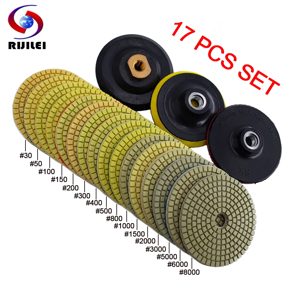 Набор алмазных полировальных дисков RIJILEI, 17 шт., 4 дюйма, 100 мм, для сухой и влажной полировки гранитного, мраморного, Бетонного Пола