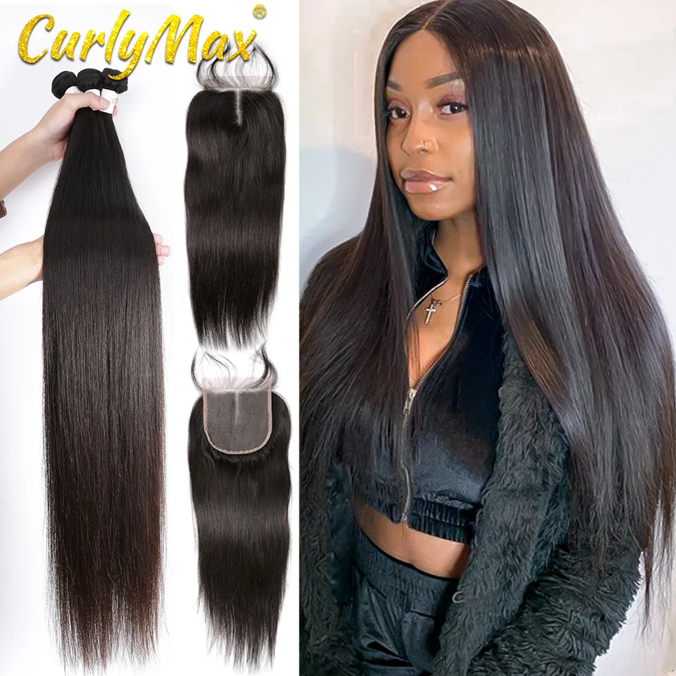 Luvin 28 30-дюймовые прямые бразильские человеческие волосы, плетенные 3 4 пряди, с 4x4 5x5 закрытыми и закрытыми кружевами, парик