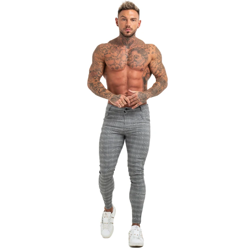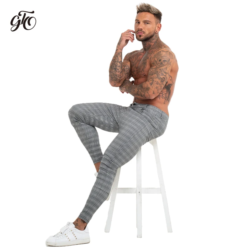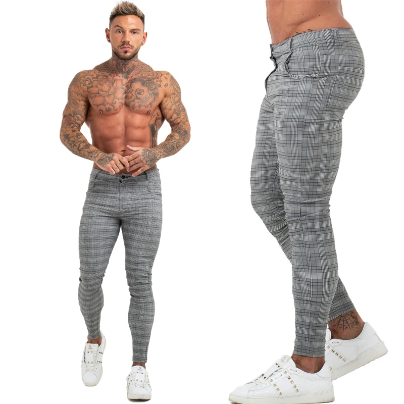 Мужские брюки-скинни GINGTTO, серые брюки-скинни для мужчин, удобные эластичные брюки полной длины, облегающие брюки zm360