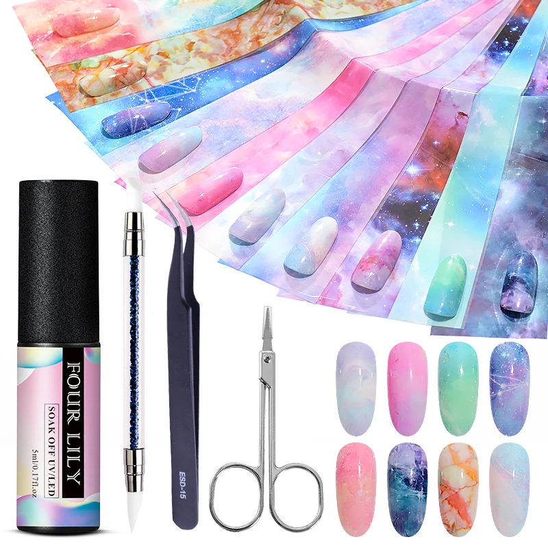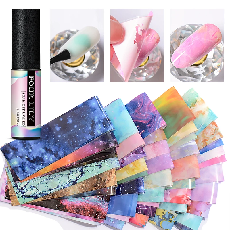 Четыре лилии переноса гель клей для ногтей Фольга звезда Звездное небо переводная наклейка клей с переводной бумагой лак для ногтей гель маникюр