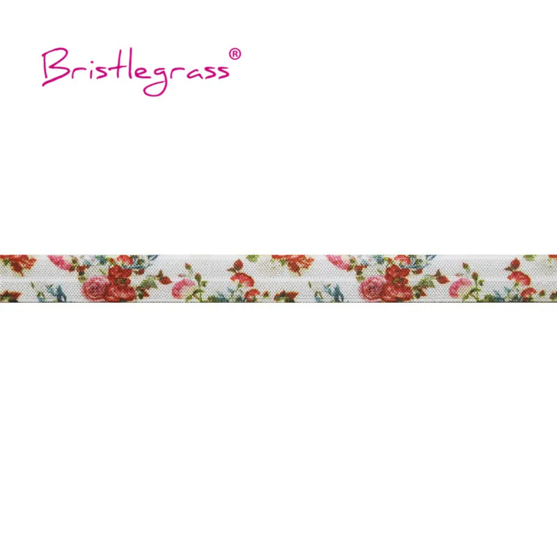 Блестящая трава 5 ярдов 5/8 "15 мм Бабочка Пион цветочный принт FOE Fold Over Elastics спандекс атласные ленты галстук для волос платье-пачка Шитье