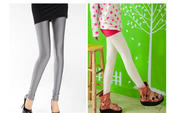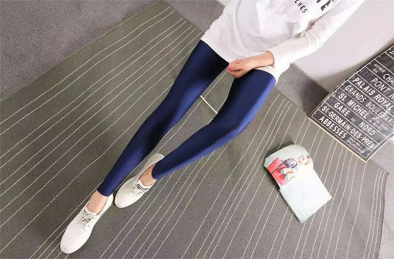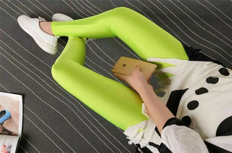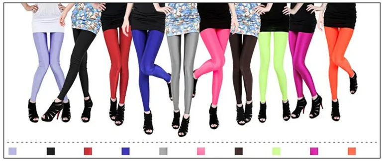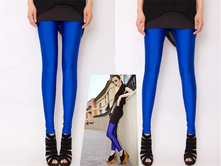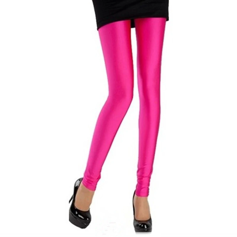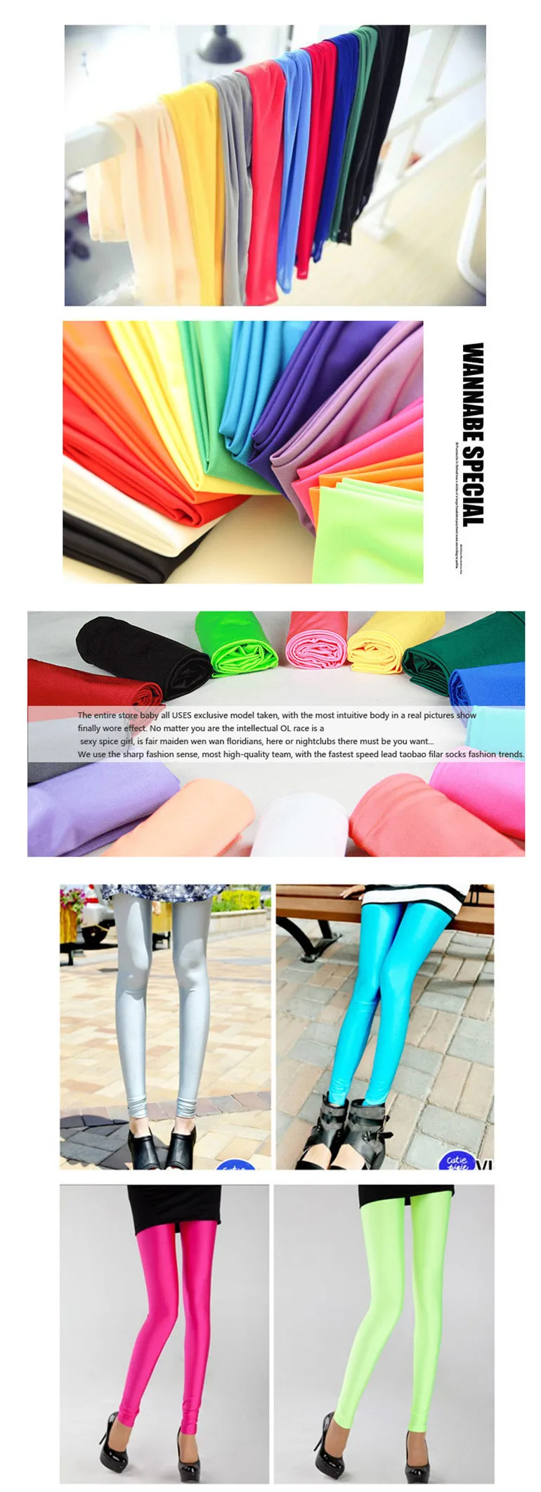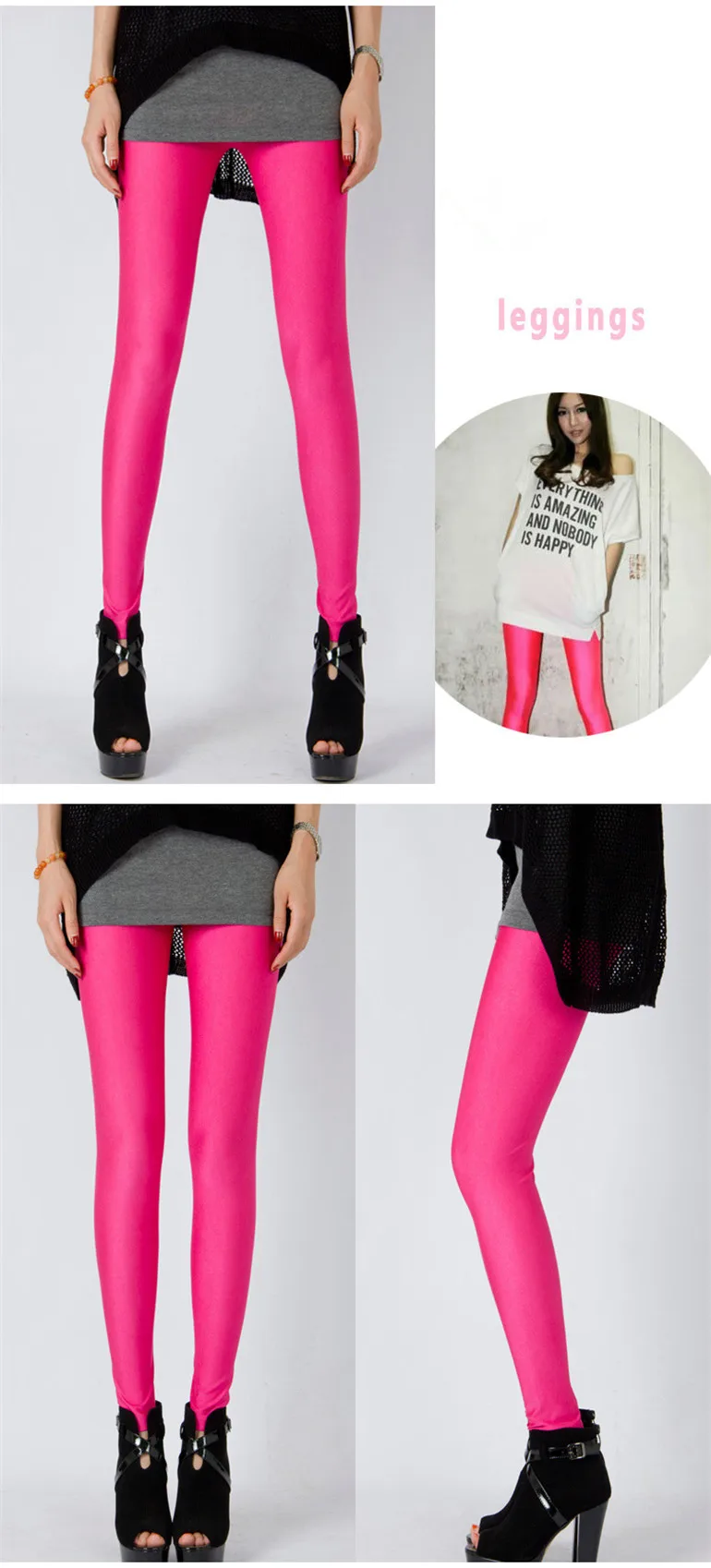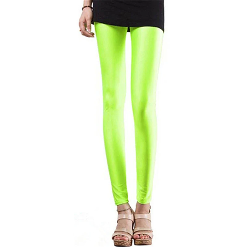 LJCUIYAO Женские однотонные флуоресцентные Блестящие Брюки Леггинсы из спандекса блестящие эластичные повседневные брюки для девушек эластичные с высокой талией