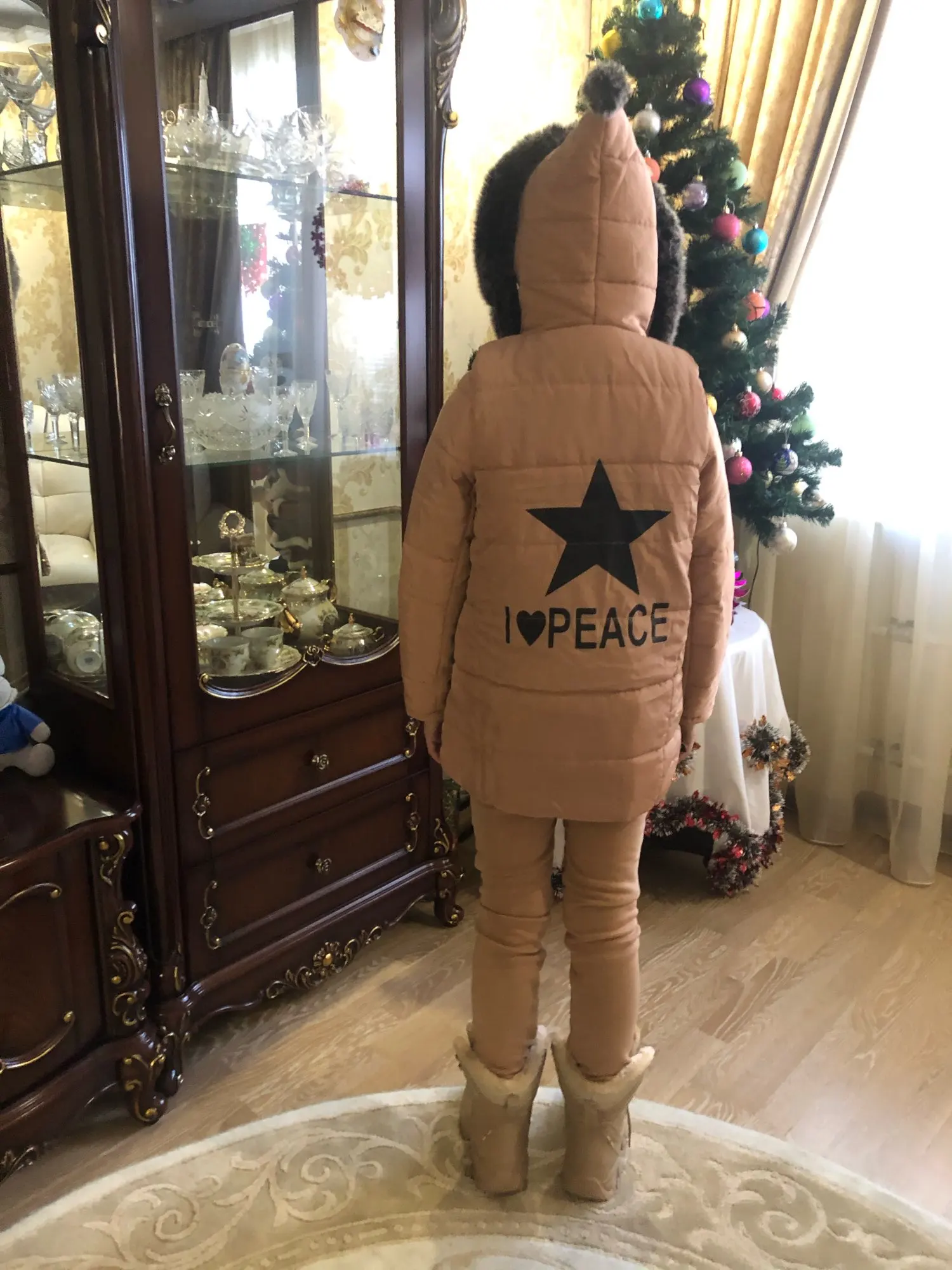 Зимний комплект для девочки, куртка с капюшоном и штаны из хлопка, теплая куртка с капюшоном и меховым капюшоном, для русской зимы