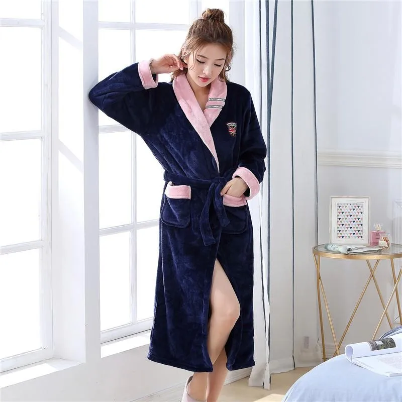 Женский зимний фланелевый Халат-кимоно, размера плюс, сохраняющий тепло банный халат, домашняя одежда, удобная мягкая ночная рубашка, Повседневная Пижама