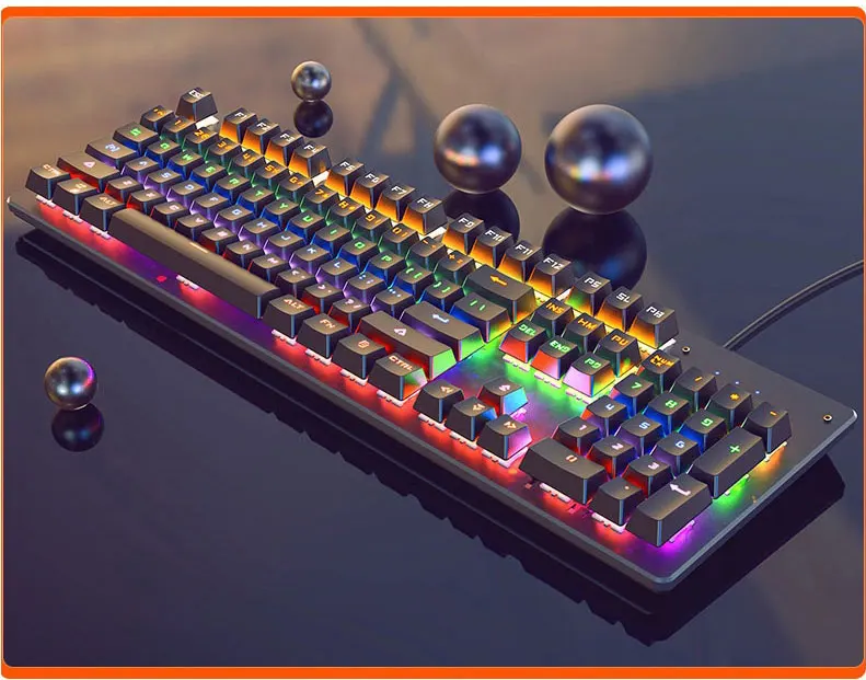 * Позиционирование продукта: игровая механическая клавиатура* Количество кнопок: 104 клавиши* Клавиатура Длина кабеля: около 1,6 м* Способ передачи: Проводной USB* Вес изделия: около 900 г* Защита от привидения: защита от привидения с полным ключом* Размер клавиатуры: около 45x18x4 (см)* Провод продукта: защита от помех плетеный провод* Материал панели: металлическая панель* Тип ключа: обычная версия/панк-версия [покрытый колпачок]