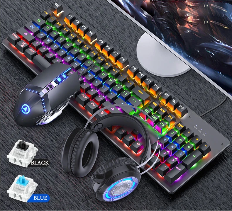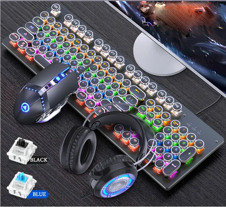 Механическая клавиатура черная ось синий переключатель Ретро панк игровая клавиатура мышь наушники набор из трех частей кабель для рабочего стола ноутбук