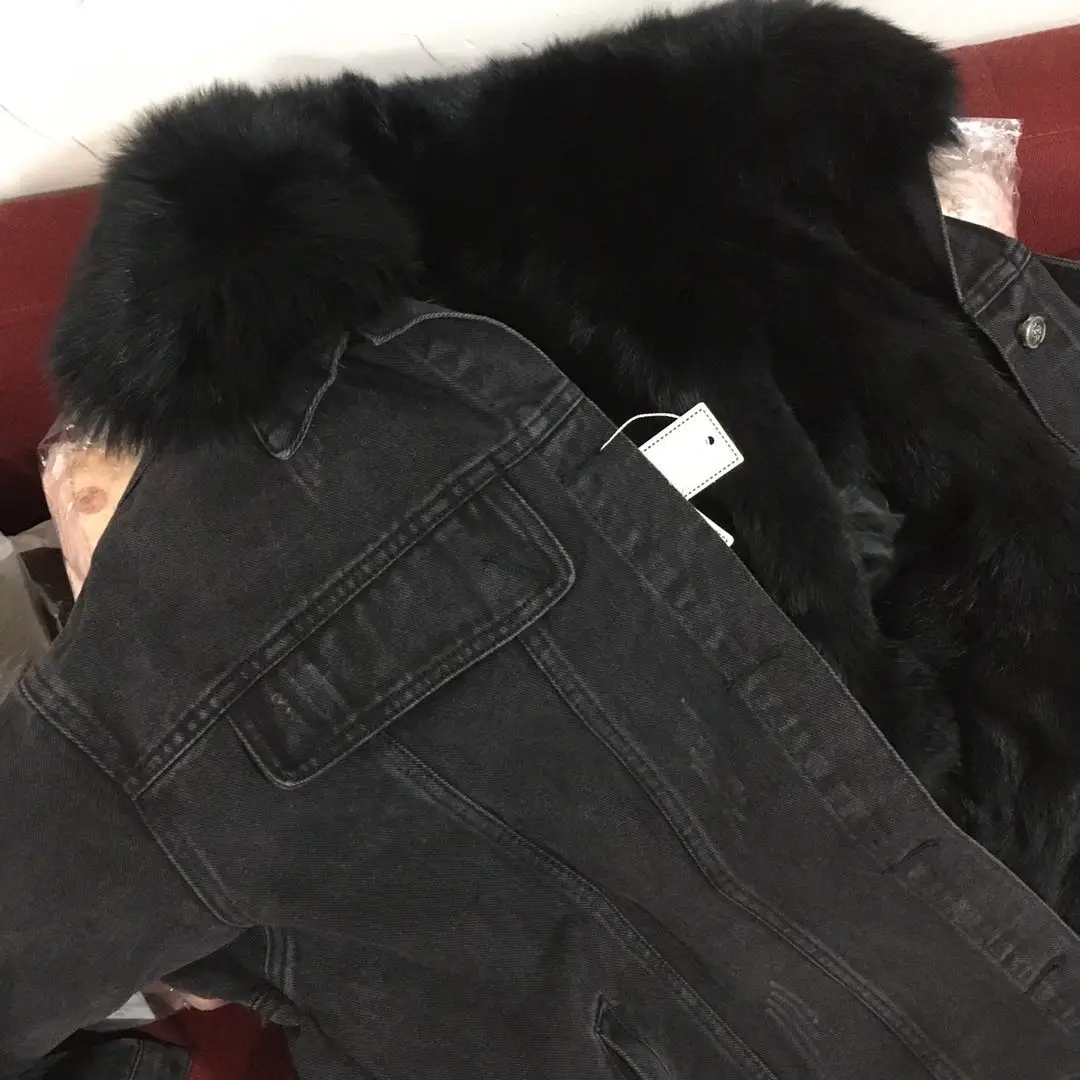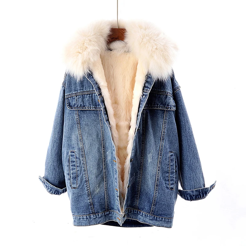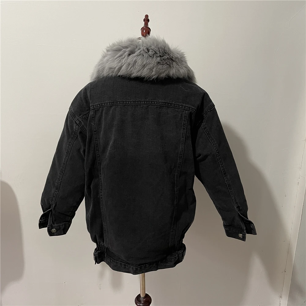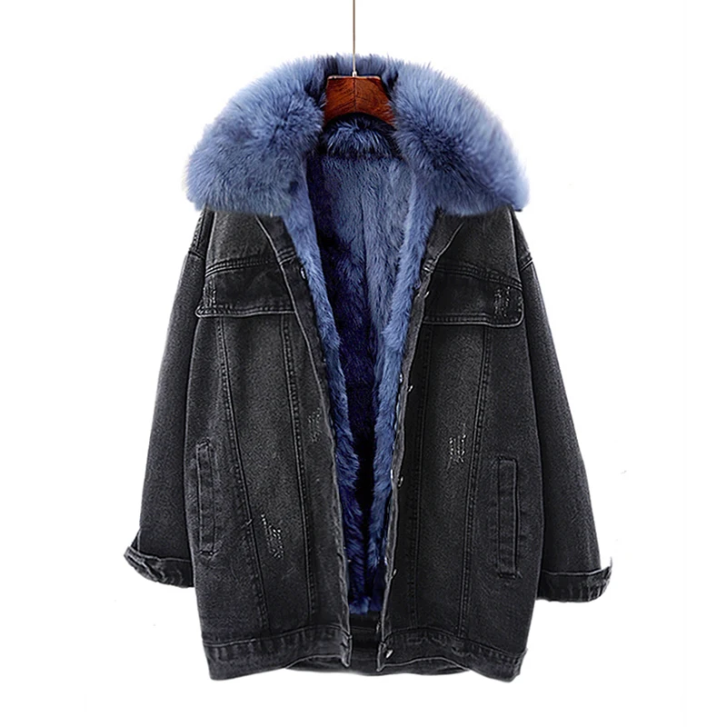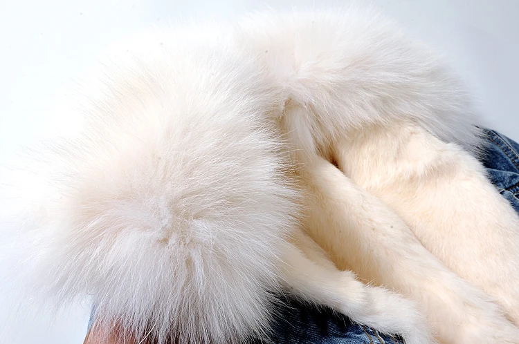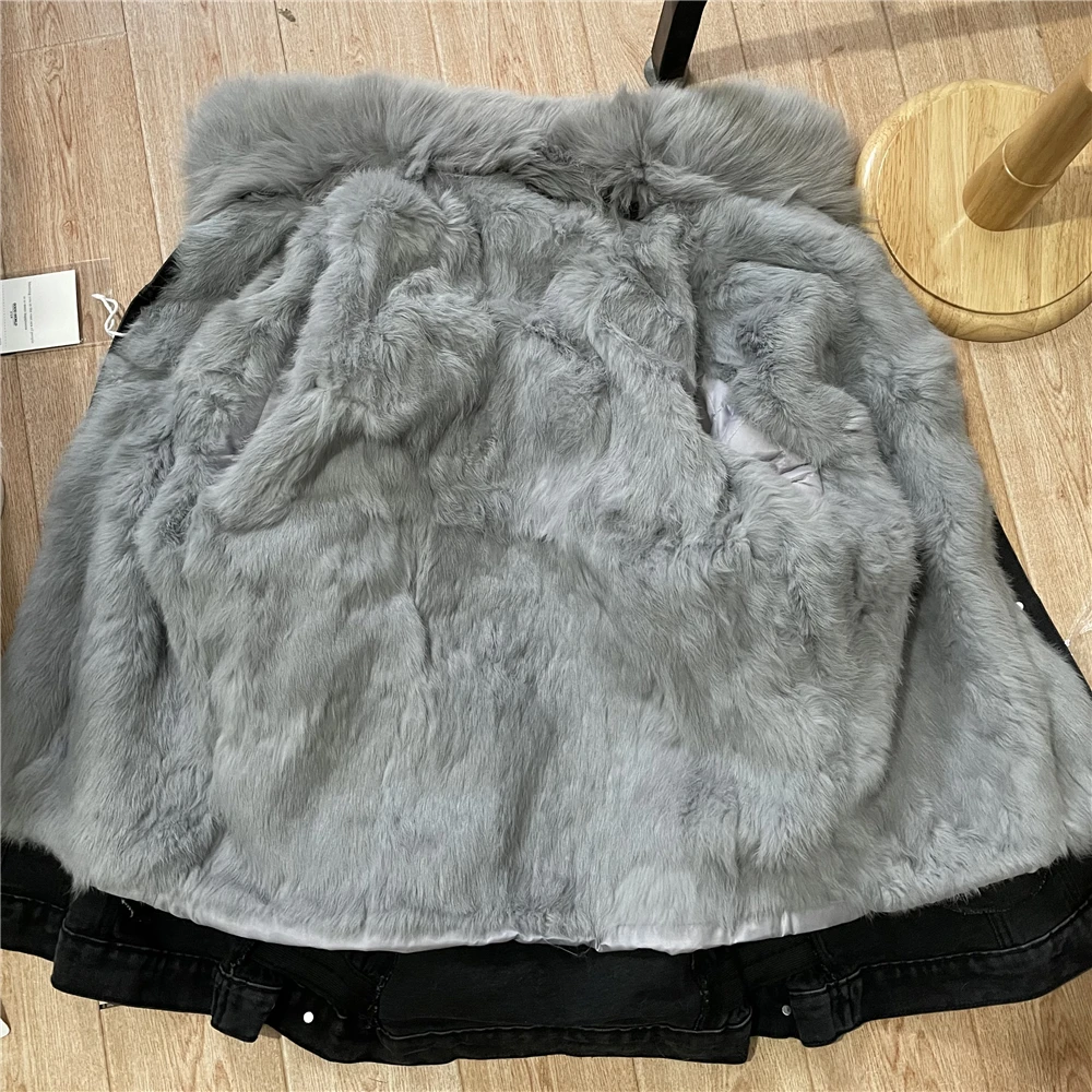 Женская меховая куртка с воротником и подкладкой из натурального кроличьего меха, деним с мехом парка в стиле ретро, верхняя одежда, зима F95
