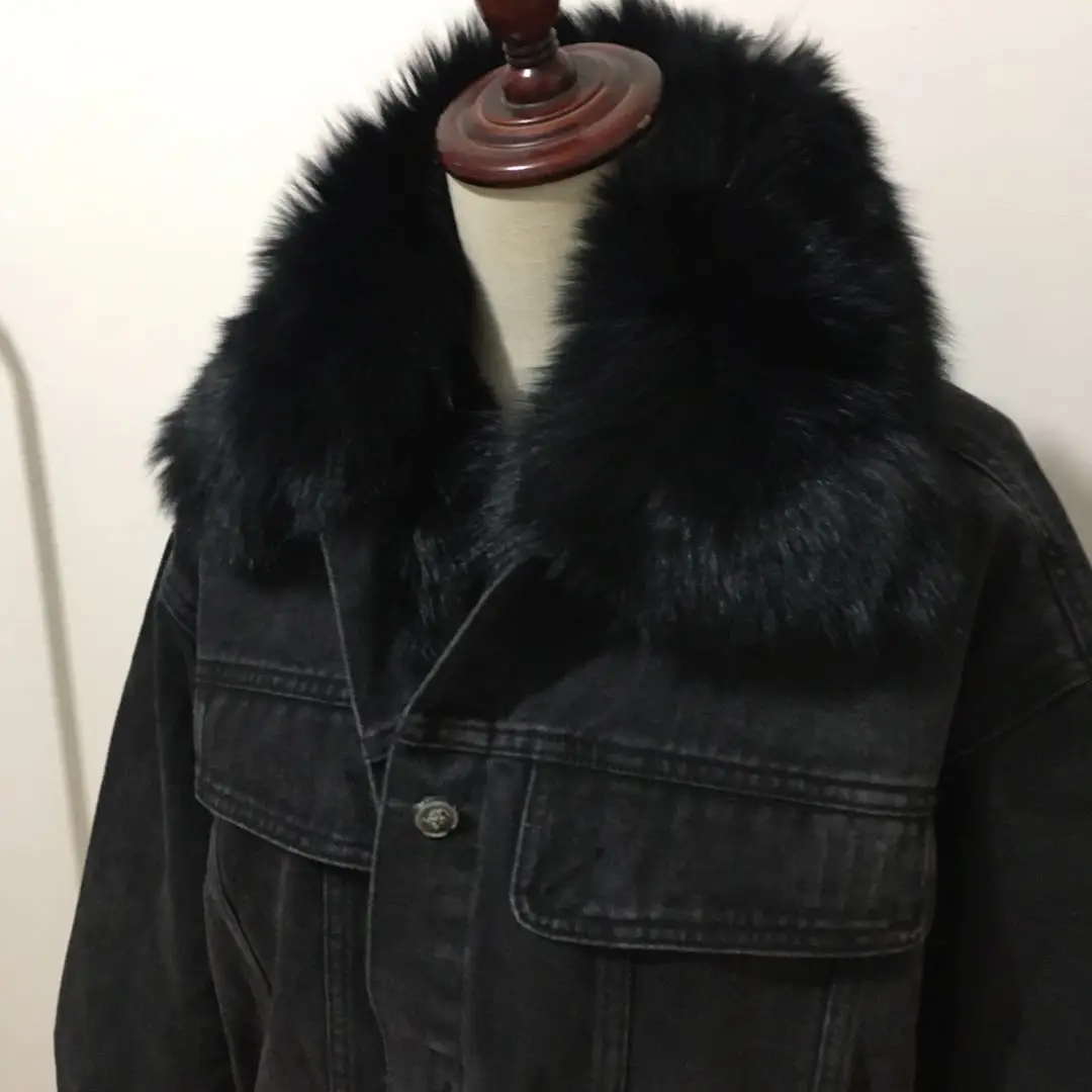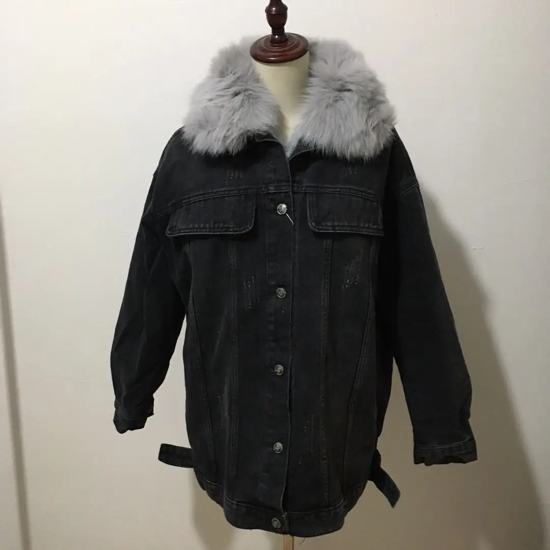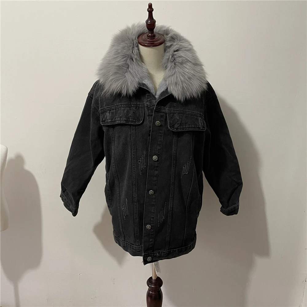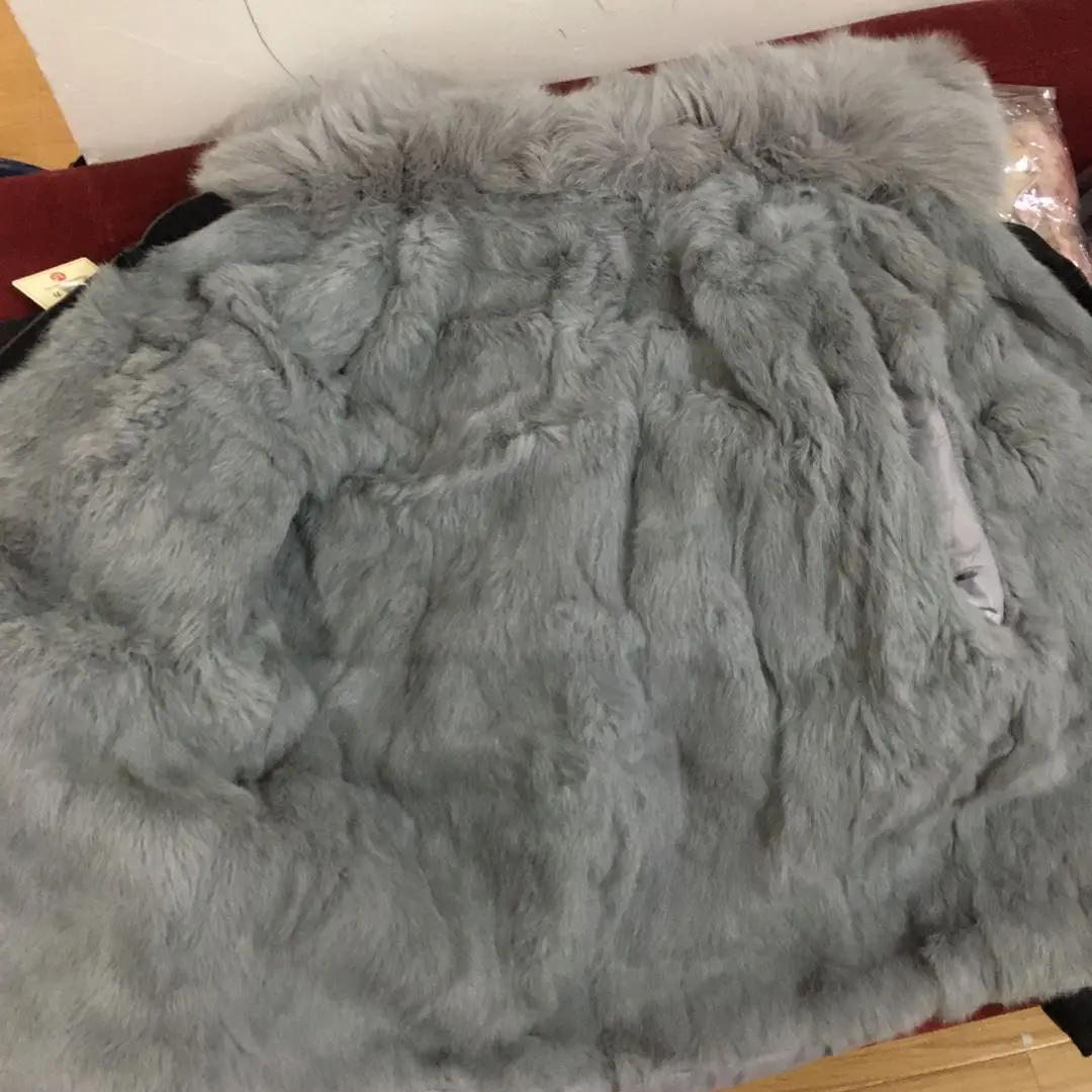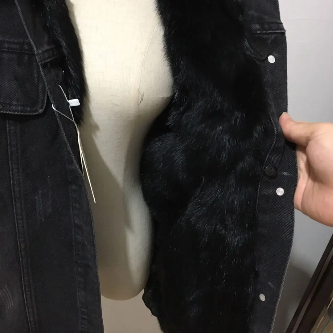 Женская меховая куртка с воротником и подкладкой из натурального кроличьего меха, деним с мехом парка в стиле ретро, верхняя одежда, зима F95
