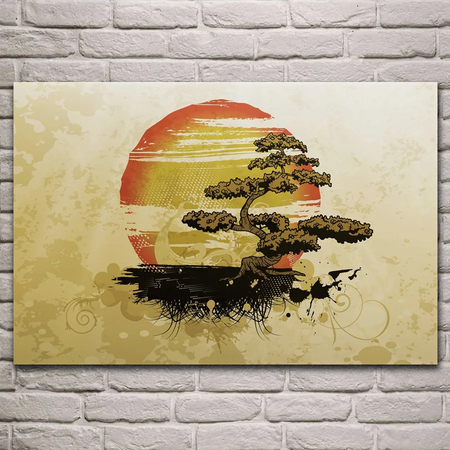Гранж бонсай искусство Оранжевый Бежевый Солнце облако ткань настенные постеры картина домашнее искусство Гостиная украшения KL033