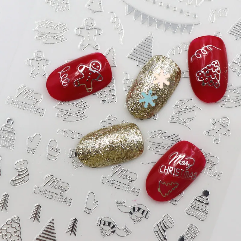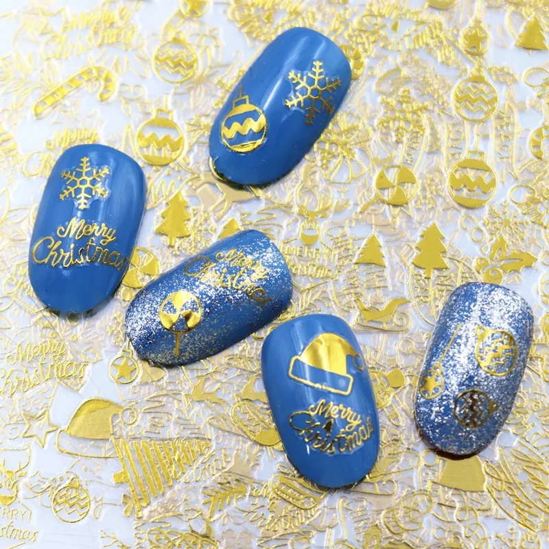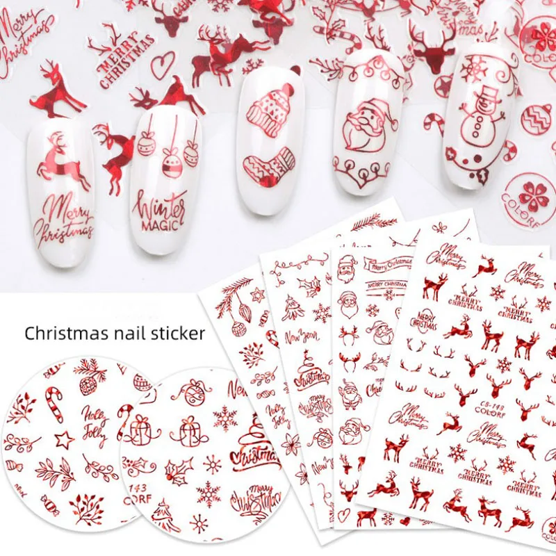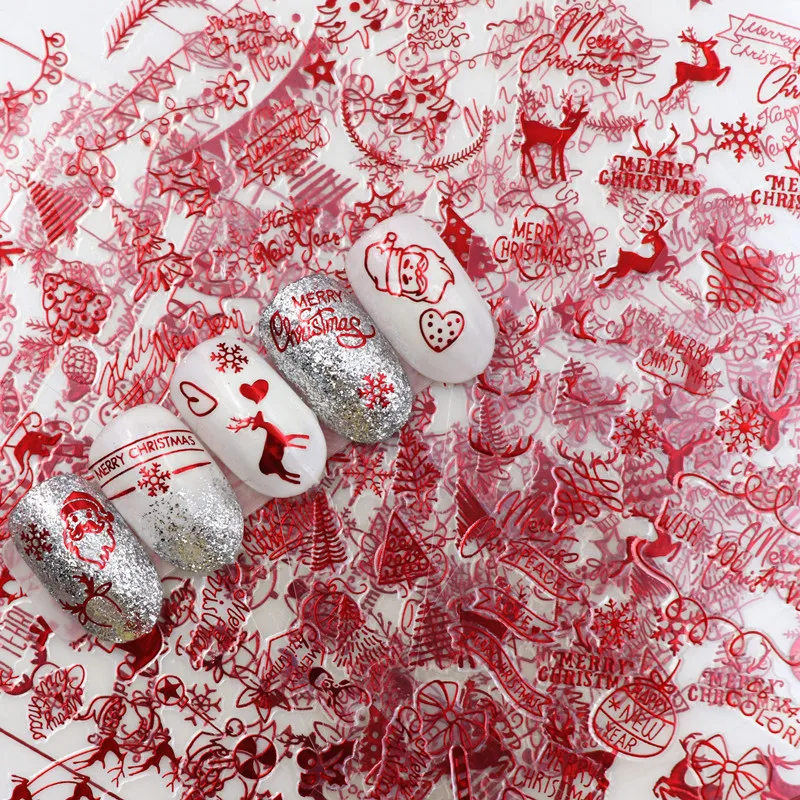 Новые модные 3D наклейки для ногтей Санта-Клаус белыйзолотойкрасный клей на заднюю часть Лазерная Рождественская елка наклейка сделай сам