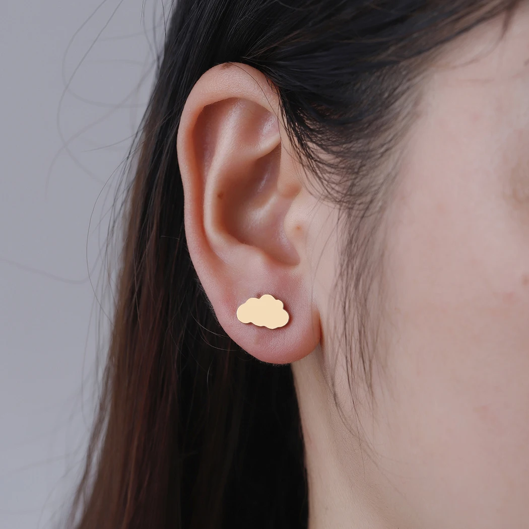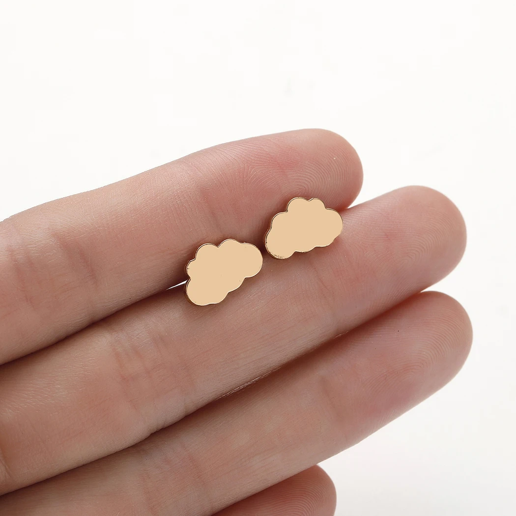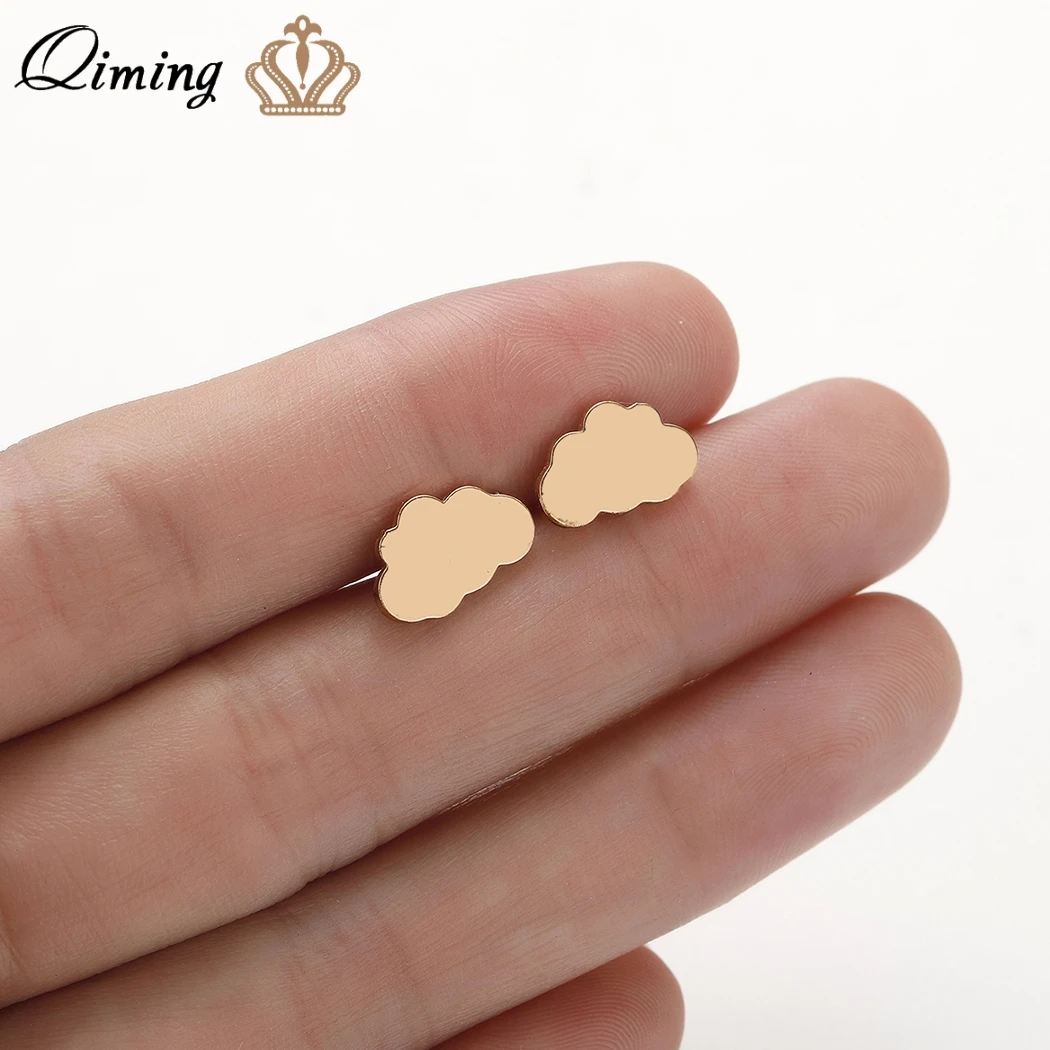 Маленькие серьги-гвоздики QIMING для женщин и детей, медные серьги-облака со стойками, модные золотые дешевые простые подарочные украшения